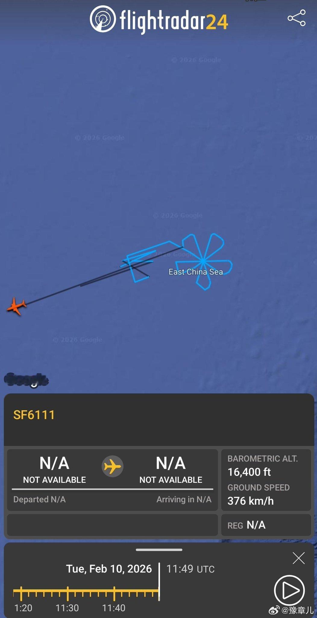 一架中国无人机在东海上空画了一朵花。
