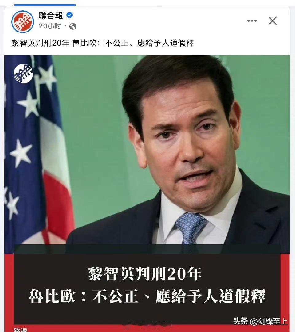 黎智英被判20年,鲁比奥表示不公平 我也认为不公平,应该直接无期或者死刑 对于民