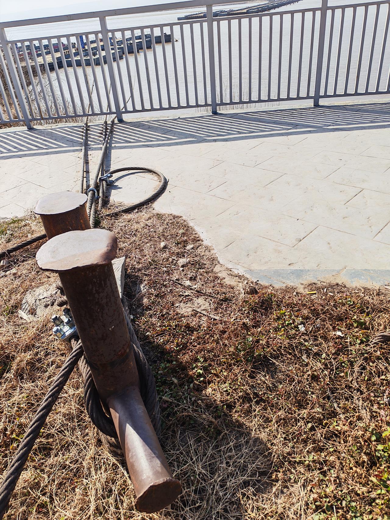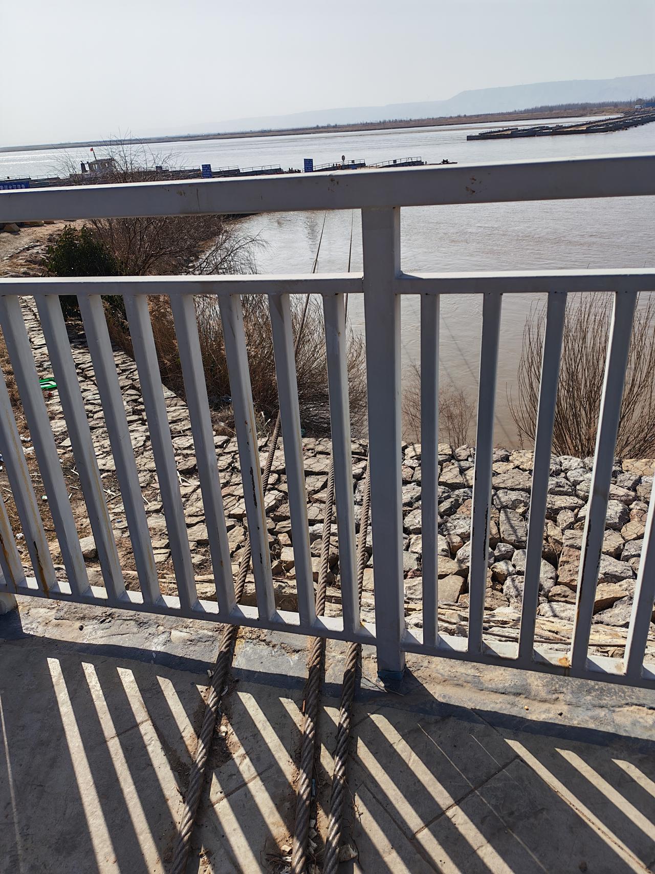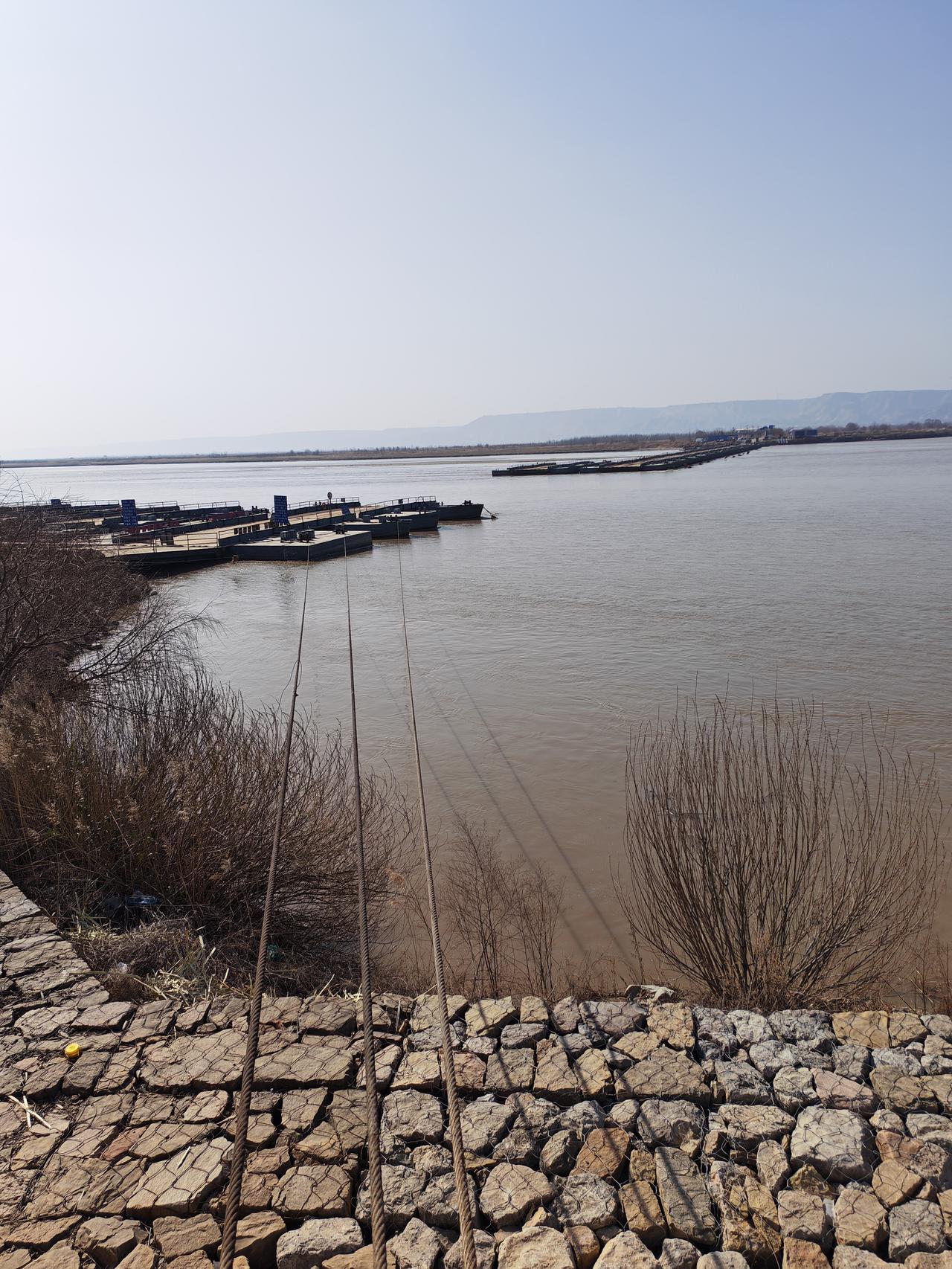 晒图笔记大赛黄河临猗县吴王浮桥的钢索固定拉线。浮桥正在恢复连接,估计开通在即。