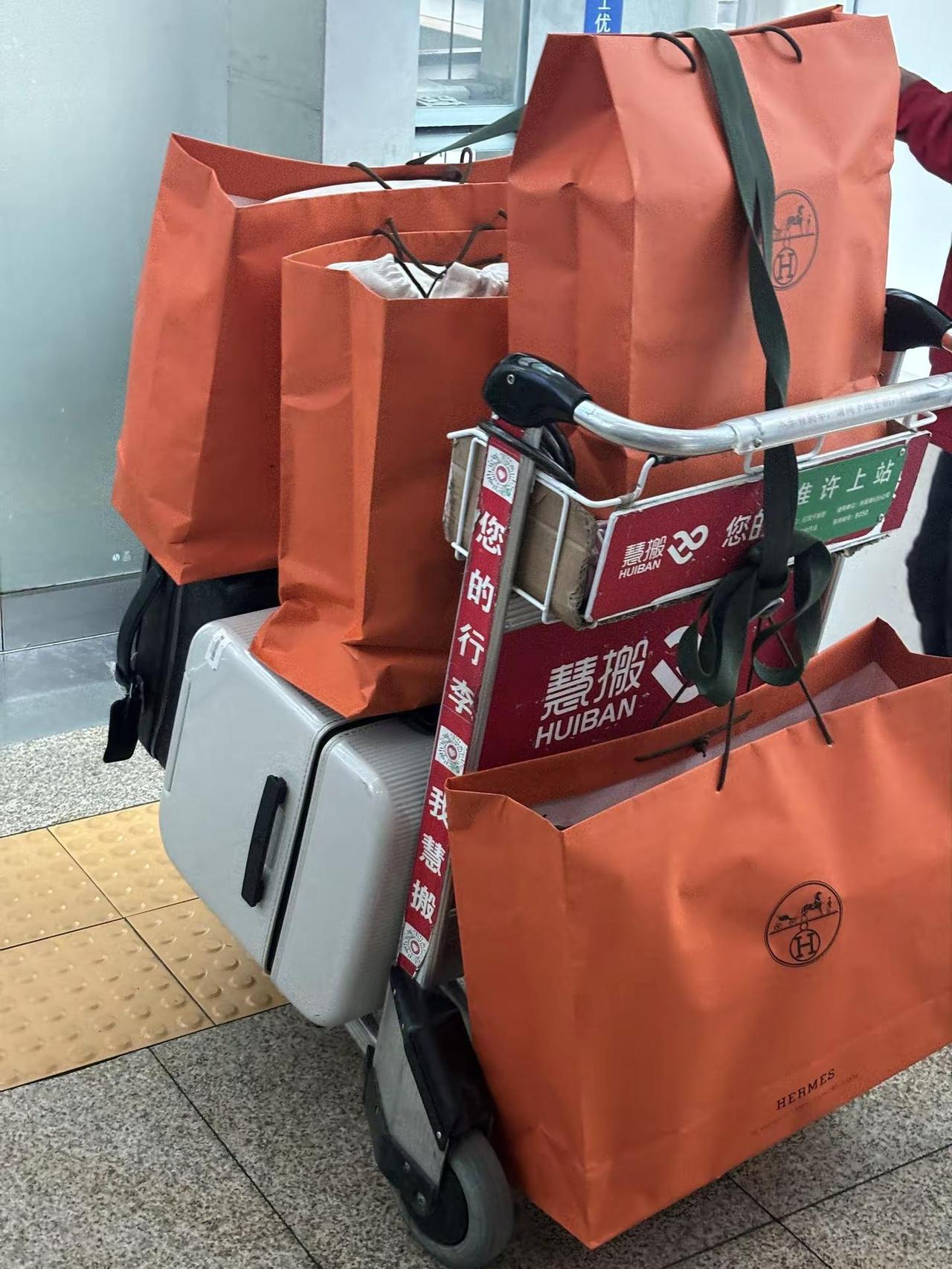 排队时还在想是谁买的爱马仕,上了车才发现是自己买的