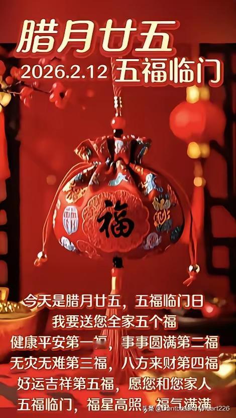 [玫瑰][福][招财进宝]五福临门[锦鲤到来][大笑][祈祷] 今天是2月12日 腊月二十五 愿我们多喜乐、常康宁,所念皆如意,越来越好![福][祈祷]