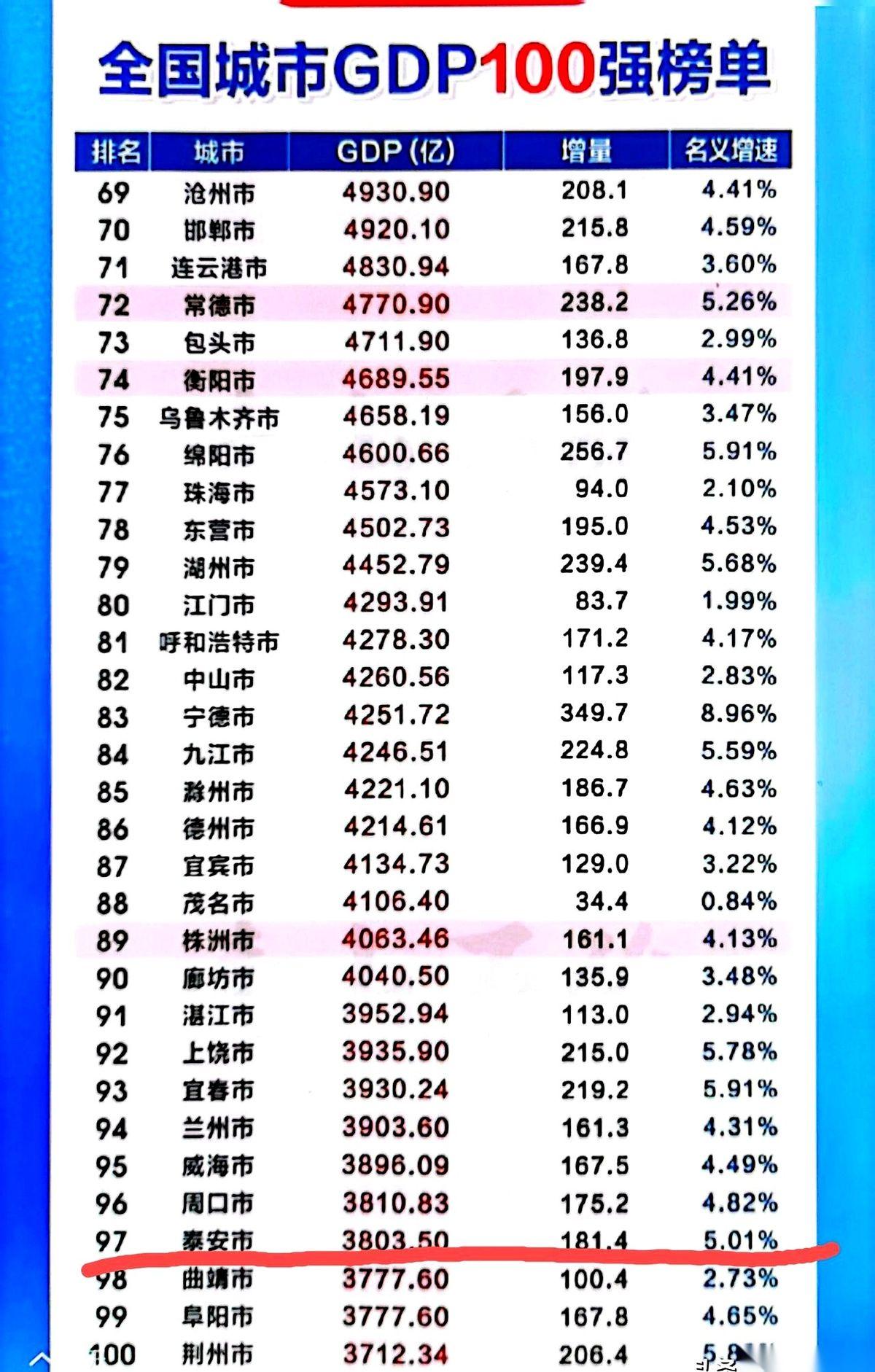 山东最新的经济排名里,有个地方的数据,看得人一激灵。 主角,泰安。 论块头,它在省里排第12,不算拔尖,甚至有点不起眼。 但一看“奔跑”速度,全省第三。 就是这个排在队伍中间的选手,一脚油门踩下去,年度增长速度直接冲到5%以上,把一堆块头比它大的甩在身后,硬生生拿了个全省增速的铜牌。 光一年,就多长出来180多个亿的家底。 这个增量,也挤进了全省前十。 什么概念?就是那种平时不声不响的同学,期末成绩单发下来,总分排在十几名,但进步幅度,全班前三。所有人都得回头再看他一眼。 说白了,这就不是胖不胖的问题,是壮不壮的问题。个头不大,但每一块都是肌肉。