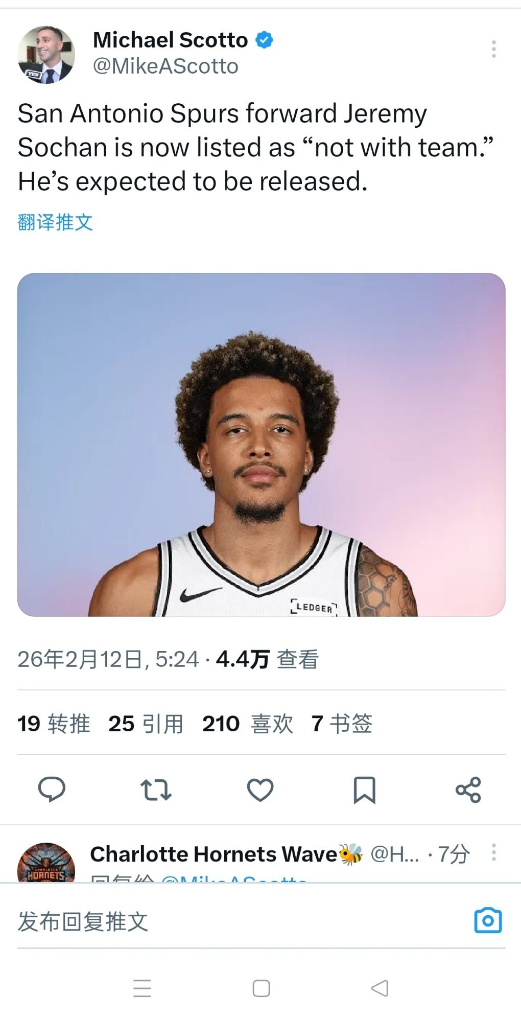 Scotto:索汗将不再随队进行比赛,马刺将裁掉他