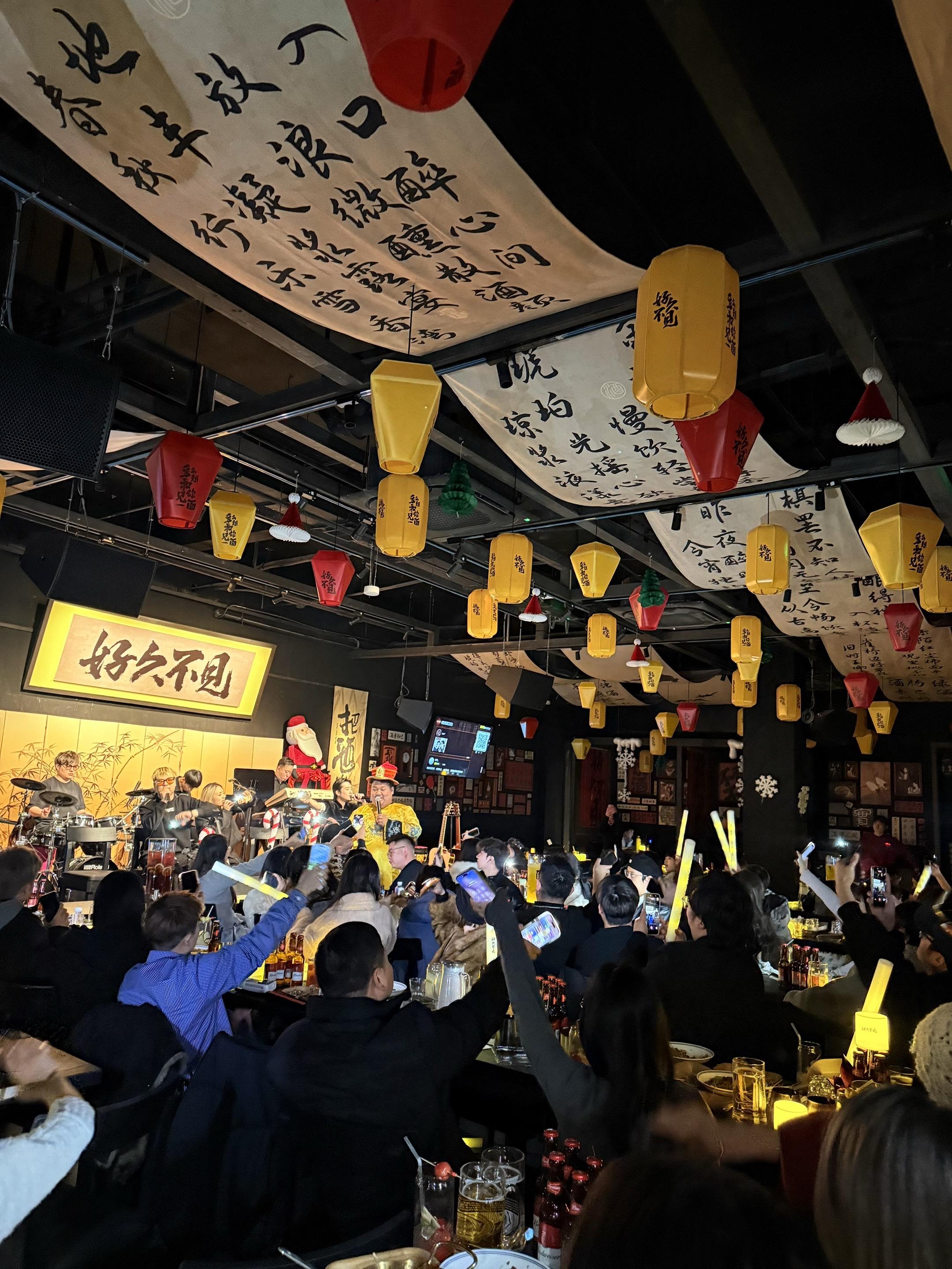 好酒不见了🏮🍷 滨江夜未央,遇见「好久不见」 原来滨江的夜晚可以这样过 推开木门,仿佛走进江湖客栈🏮 灯笼摇曳,砖墙写满故事 驻唱歌手的声线在空气里缓缓流淌 荧光棒汇成星海,合唱声漫过屋檐 七小时不停歇的音乐现场🎠👏 从民谣清唱到乐队燃炸 酒杯碰撞声里夹杂着烤串香气 江湖菜的热辣遇上精酿的沁爽 不用转场,从日落待到夜深 📍好久不见·烧烤民谣酒馆(滨江店) 🌃 18:00-深夜 ✨