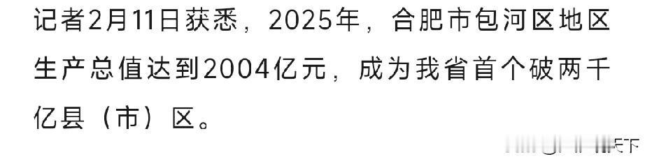 合肥市包河区是安徽省唯一的2000亿区,实力强劲 包河区是合肥市辖区,2025年数据是2004 亿元,成为安徽省唯一的2000亿区。 安徽省总计有104个县市区,其中市辖区45个、县级市9个、县50个。 包河区2025年gdp高达2004亿元,可以排在安徽16个地级市里12名,数据高于淮南,淮北,铜陵,池州,黄山5市。 合肥市管辖蜀山区、庐阳区、瑶海区、包河区,长丰县、肥东县、肥西县,代管巢湖市。合肥GDP增速 合肥千亿县 合肥市区地图
