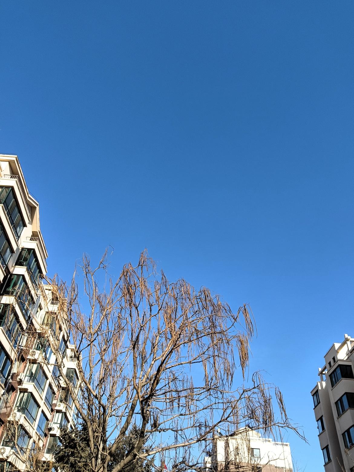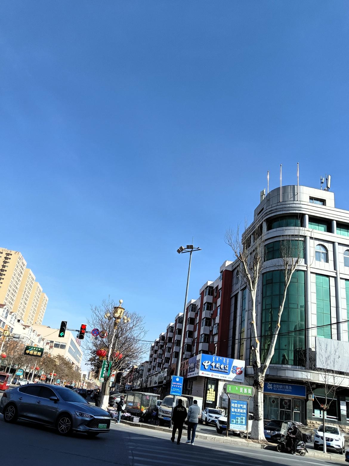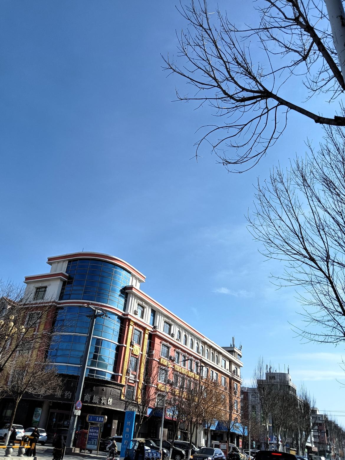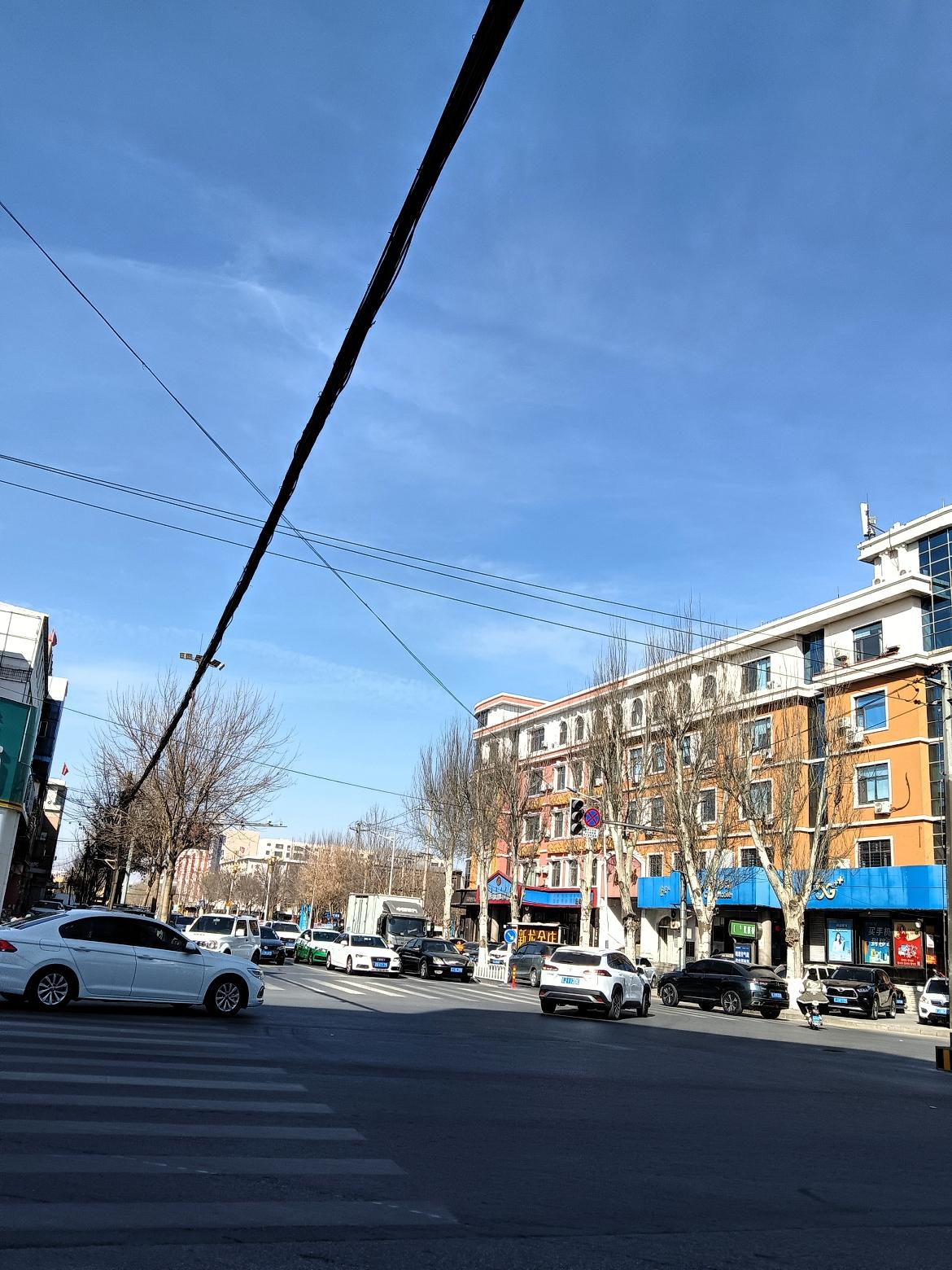 冬日暖阳下的城市街景,车水马龙,繁华落尽。