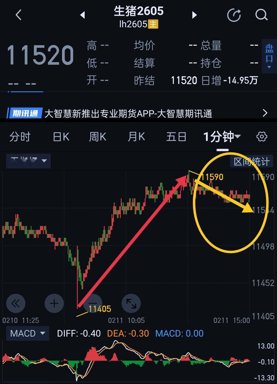 生猪2605,今天盘中等一分钟回调结束,如不破11405。准备小仓位"多单"试试水温。