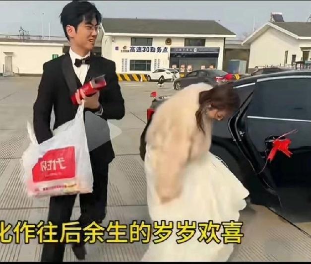 李婷找到了!与新郎在服务区被拍,瘦高个、烫头扎着麻花辫,穿着白色裙子、皮草棉服,虽然弯着腰只能看到侧脸,甜美小姑娘类型,新郎也很帅,穿着结婚标准西装,眉清目秀,戴着眼镜,气质像理科大学生,新郎一个人高速开车,拉着新郎一个人,肯定远嫁,很简单很纯粹,没有大规模车队,只有二人世界,只有他们的爱情! 可是新郎也独辟心思,你怎么知道我把李婷娶到了!横幅在风中疾驰,这是爱的宣言!暖心、感动!更让人感动的是,路人车主网友看到了,纷纷加入车队陪跑!这就是中国人的善良!祝福李婷新婚夫妻,幸福永伴!早生贵子!