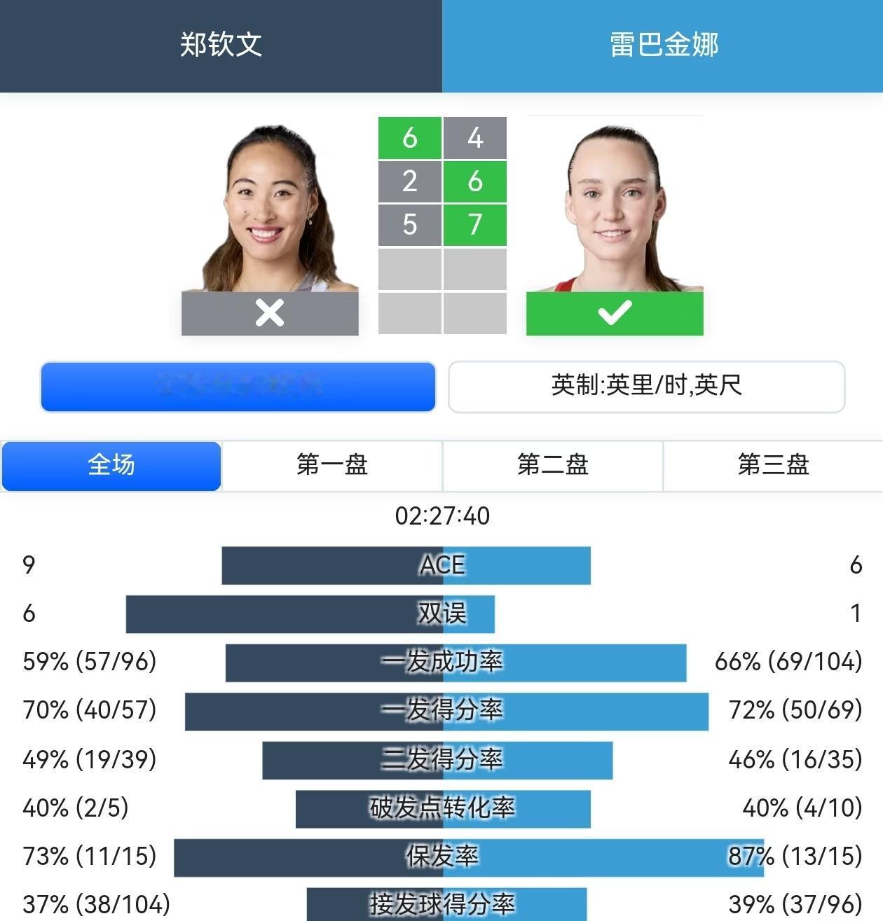 没想到,郑钦文伤愈刚复出就表现的这么好。 和澳网冠军莱巴金娜打的难分难解,尤其是最后一盘,,从0-3到呀2-5,追到5-5,虽然最后遗憾失利,但也体现了郑钦文的绝对实力和顽强的精神。 这场比赛也证明了郑钦文才是中国网球的一姐。相比而言,王右和郑钦文实力差距明显。 现在郑钦文还不是最佳状态,那么我们可以想象,最佳状态,并且即将进入网球黄金年龄的她会给我们带来什么惊喜。