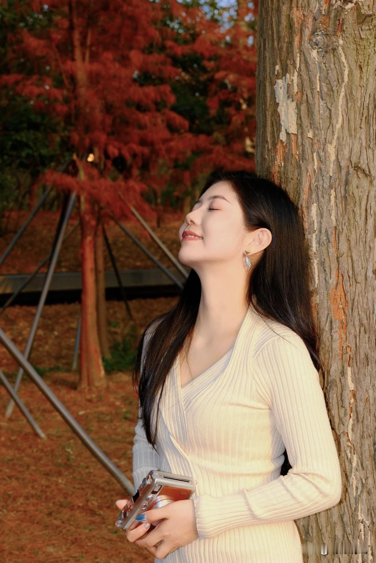 在树林拍照,越简单的动作反而越出片。 试了这么多姿势,最让我惊艳的是“侧靠树干,仰头闭眼”——就这么一个动作,拍出来张张像电影截图。 不夸张,那天朋友顺手帮我拍了几张,发朋友圈被问爆了。没有刻意摆拍,就是轻轻往树干上一靠,头仰起来,眼睛闭上。阳光从树叶缝里漏下来,打在脸上明明暗暗的,整个人一下子就静了。 朋友说,那一刻不像在拍照,像我真的在听风、在闻空气里的草木味道。 后来我自己试才发现,这个姿势好就好在“不用演”。不用对着镜头硬笑,不用纠结手放哪。仰头的时候脖子线条自然拉长,闭眼的表情也松弛。最关键的是,你那一刻是真的在感受,照片里的温柔就是真的。 现在每次去公园、进树林,我都会找棵树靠一靠。哪怕不按快门,闭眼待十几秒,人也舒服很多。 你们在树林拍照,最喜欢哪个动作? 冬日生活打卡季