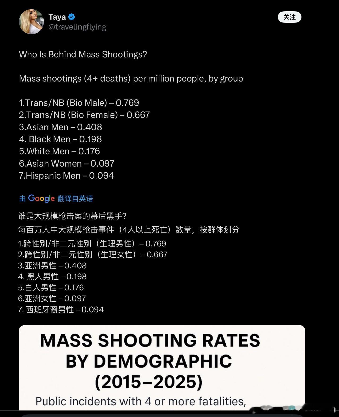 说什么亚裔男性和亚裔女性分别是美国大规模枪击案的最大“幕后黑手”,犯罪率远高于白人、黑人和拉美裔。