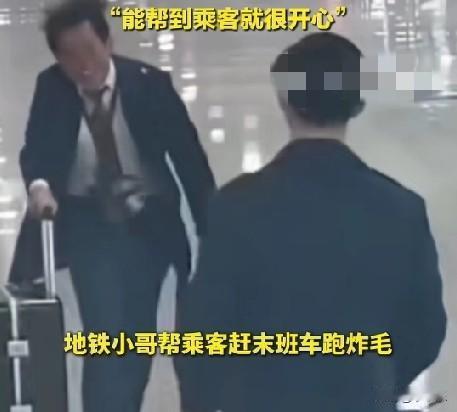 2月11日,浙江杭州一地铁乘客换乘时眼看要错过末班车,一地铁小哥飞奔过去,帮助乘客提行李箱赶末班车,一路狂奔,头发成“炸毛”表情包,最终在列车关门前19秒赶到站台。地铁小哥称,当时太赶了,没顾上自己的形象,能帮到乘客很开心。 为地铁小哥点赞![赞]帅气的“炸毛”,真是可爱又善良。现在各行各业的工作人员都在践行为人民服务,而且都将服务落实到细节中,真的太暖了![比心]这才是社会的温度,感觉整个社会越来越好了。[心]