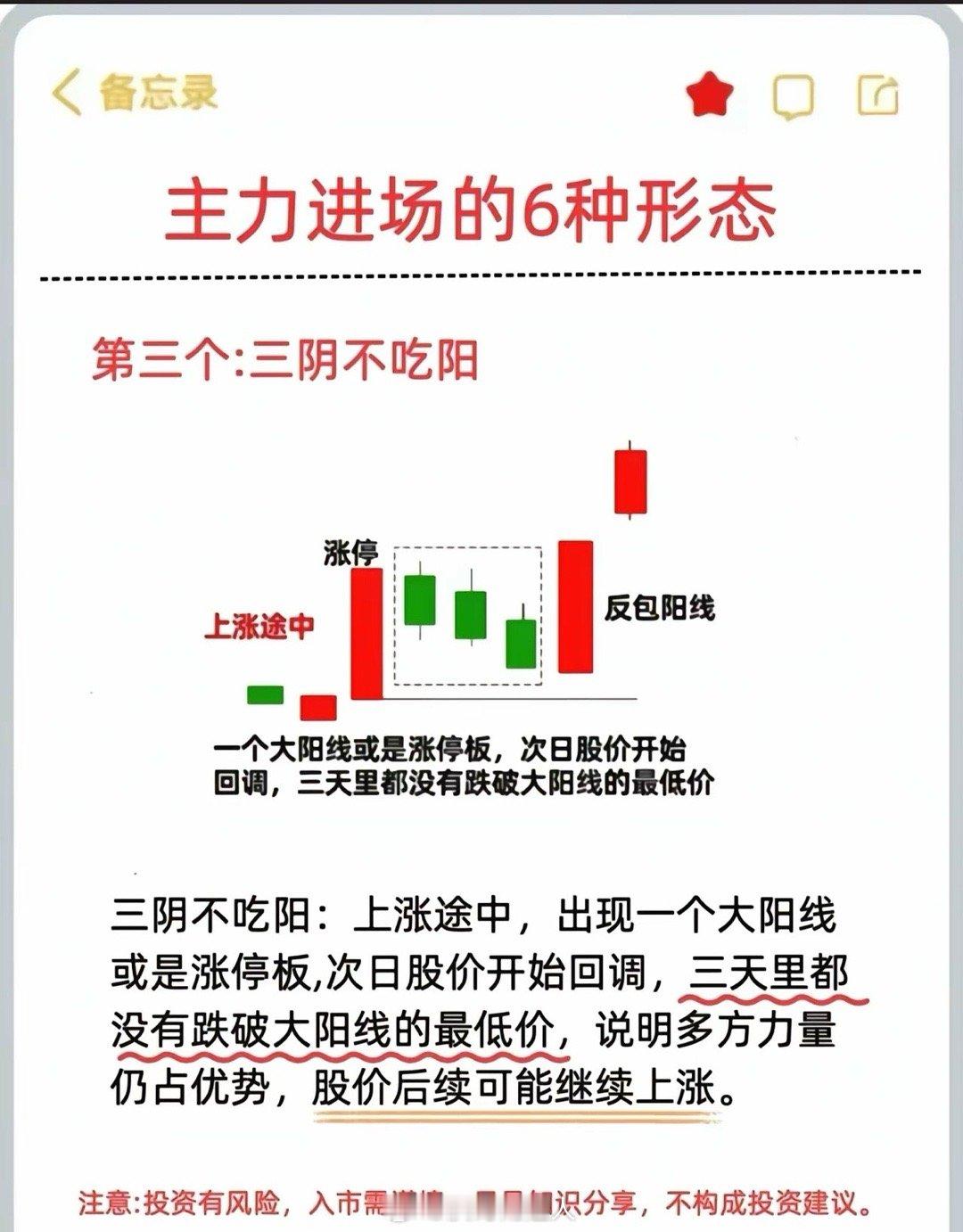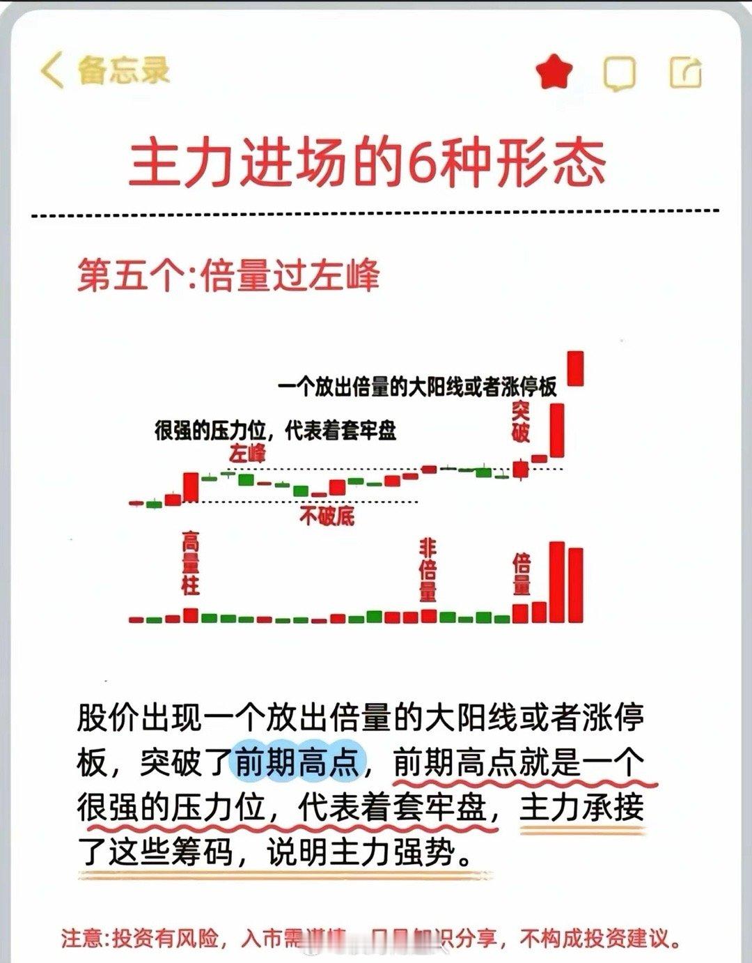 做股票需要抓住其神,如果只能抓住股票的形,那么你得拥不俗的记忆力。贴图发了六种形态,都是看涨形态,但如果只能抓住其形,那诸如此类的形态还有千千万,不可穷尽。只看其神:第一量能放大,信号其一。第二股价突破压力位,信号其二。抓住了这两点,还用得着去看主力是洗盘还是出货吗?大道至简。
