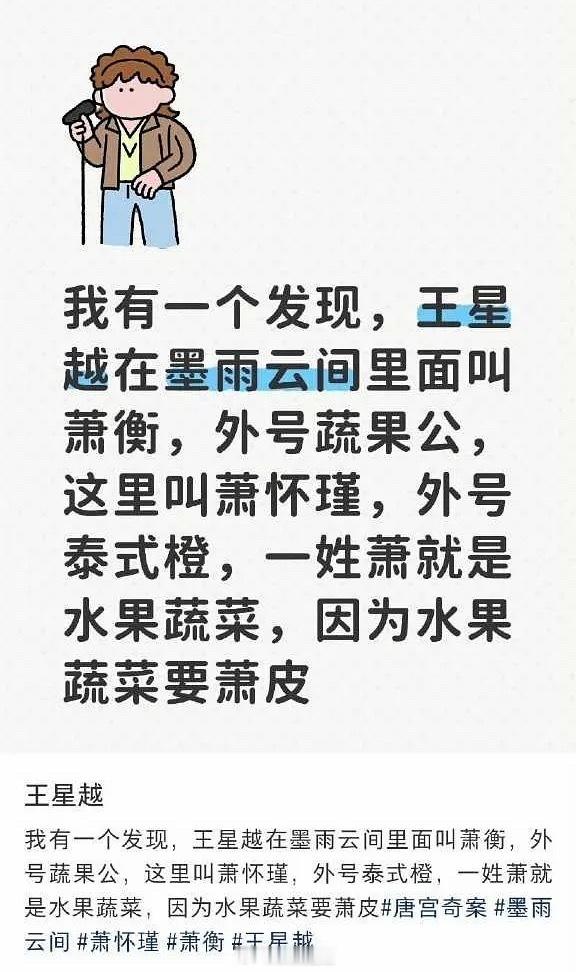 唐宫男主萧怀瑾因为官任太史丞而被网友赐名泰式橙,王星越每部剧都和水果过不去了,谐音梗算是玩明白了。