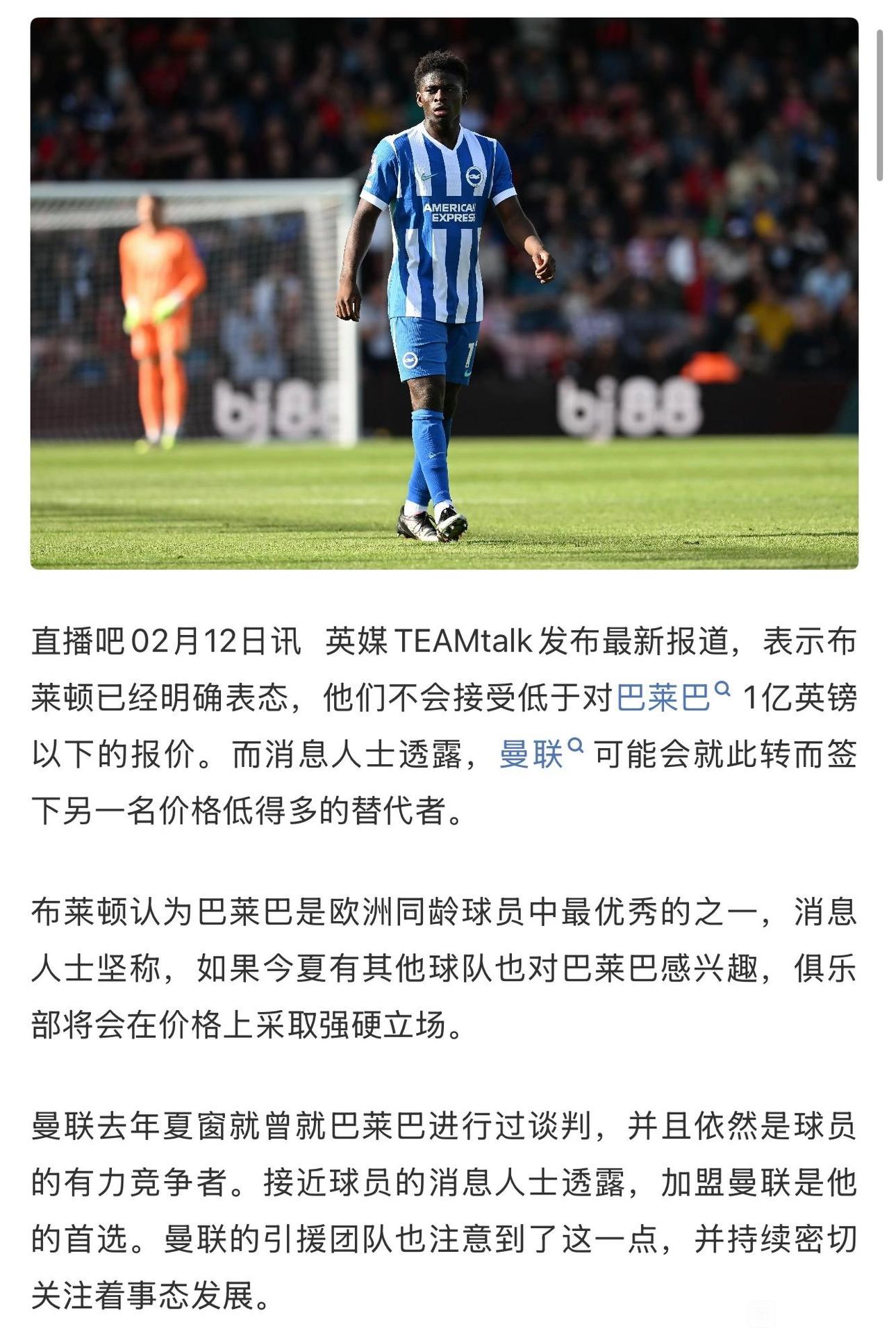 曼联是需要中场球员,但是巴莱巴还高于1亿英镑,这个真不能买。 我认为1亿不如买贝林厄姆,真宗大英帝星。 去年夏天就在巴莱巴身上浪费时间,曼联今年夏天慎重补强![大金牙]
