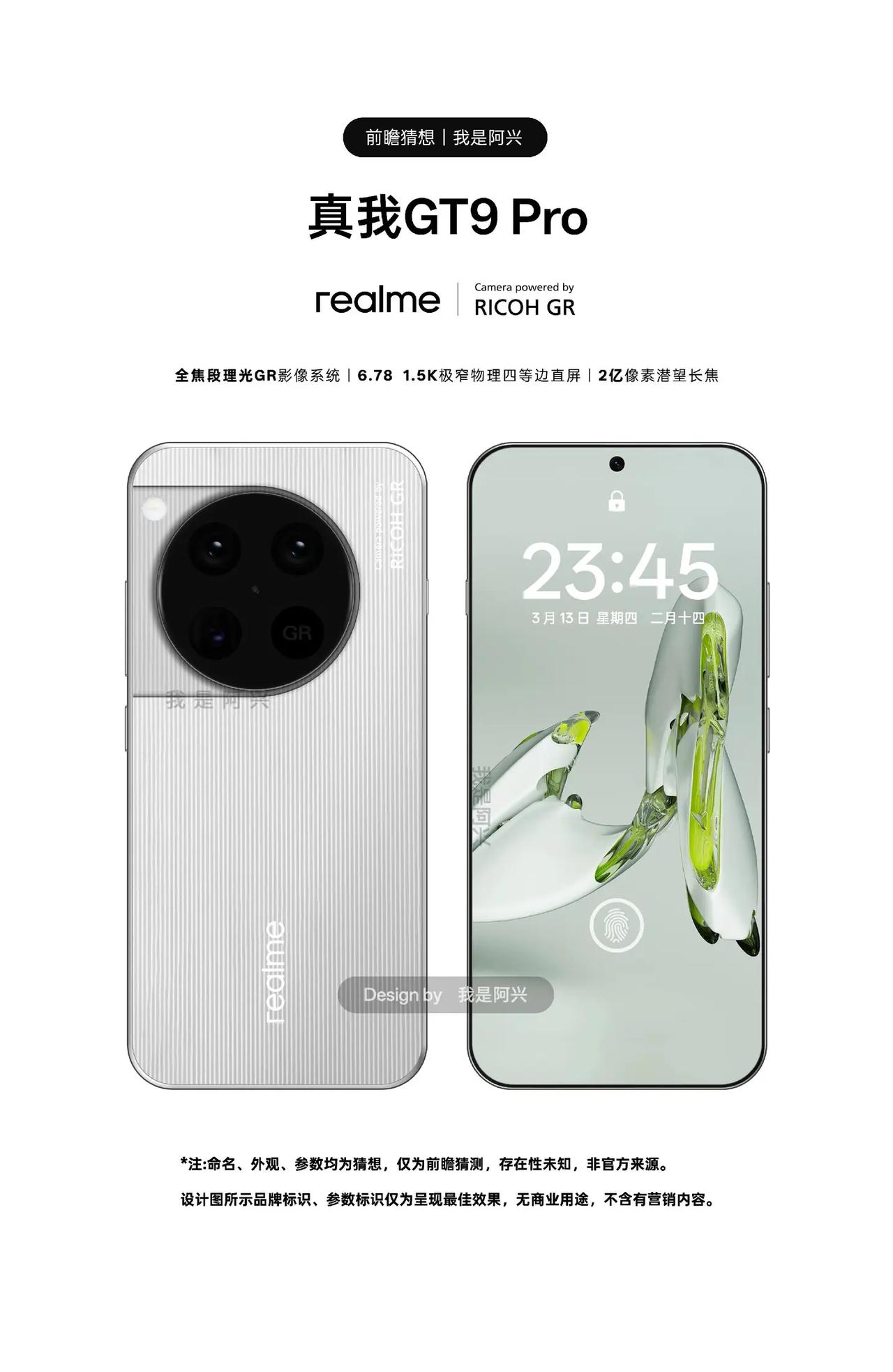 真我GT9系列。真我GT9和真我GT9 Pro,回归一加丢弃的设计,标准版闪光灯在模组内,采用倒置潜望长焦镜头设计。真我GT9 Pro采用2亿潜望长焦镜头,闪光灯在模组外,全焦段理光GR影像系统。@徐起Chase