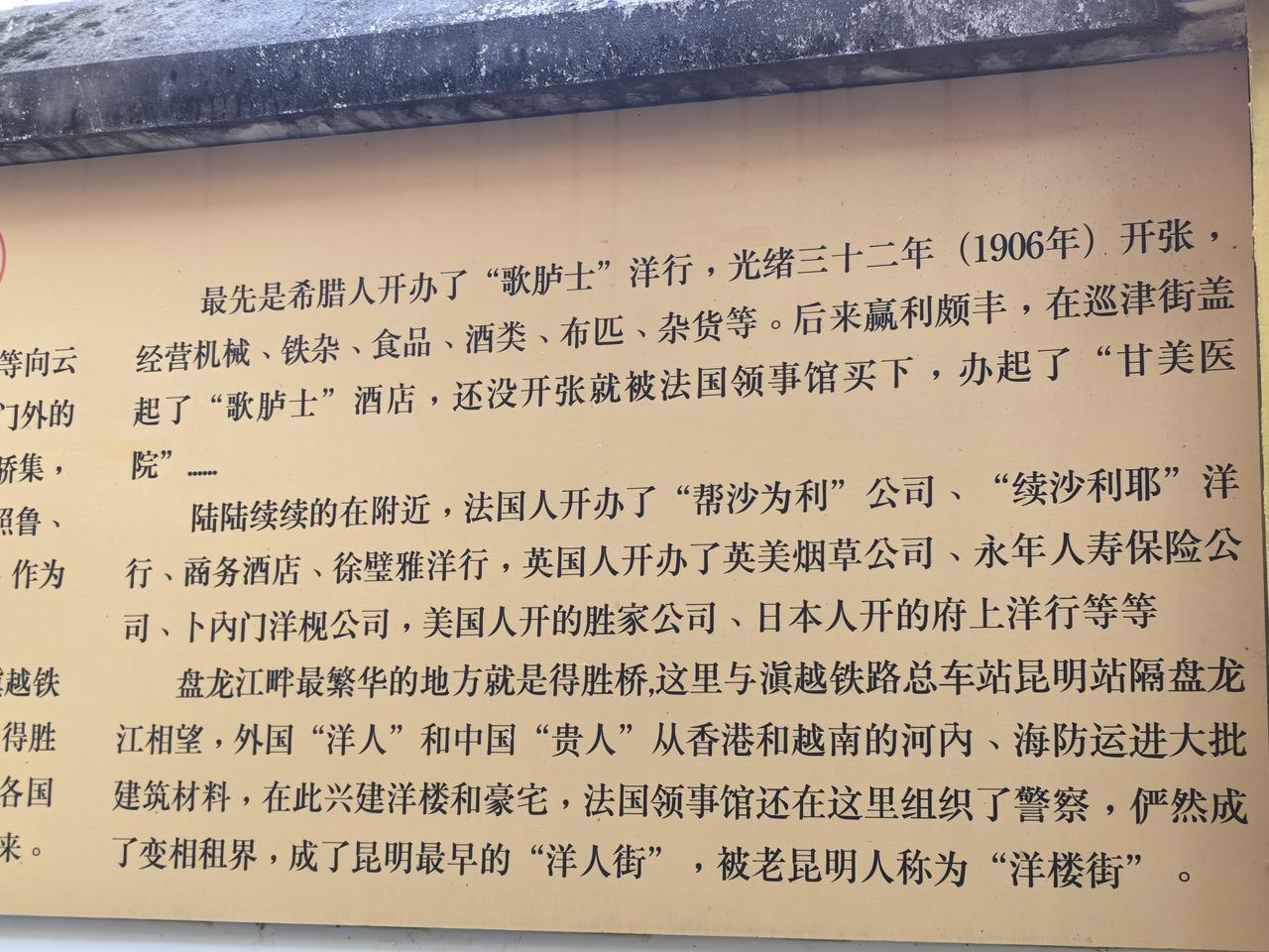 昆明在最辉煌的时候,是滇越铁路刚刚开通的时候吧!那个时候就有很多外国的商人在昆明的巡津一带买地盖他们的产业了。