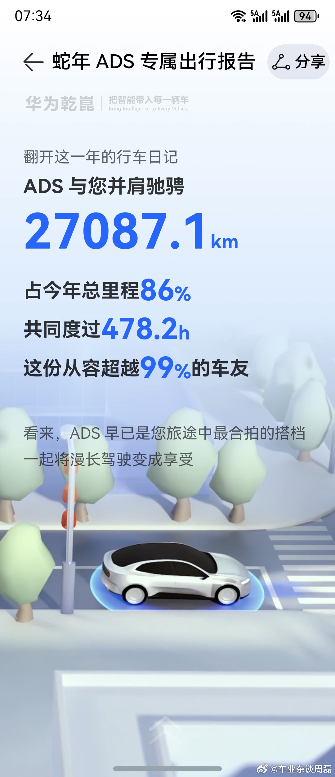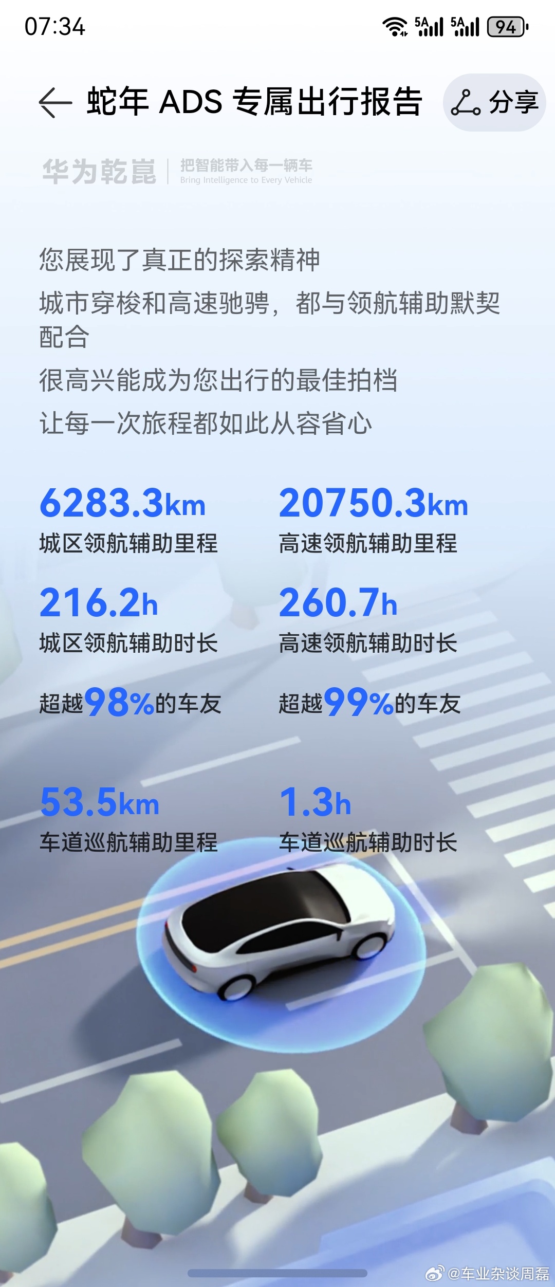 2025年我用智驾辅助跑了近3万公里,应该是用智驾最多的汽车媒体之一了吧。具体ADS数据:2025年用领航辅助跑了27087公里,,其中高速领航辅助里程20750公里,超过99%的车友,城区领航辅助6283公里,超过98%的车友。智驾体验