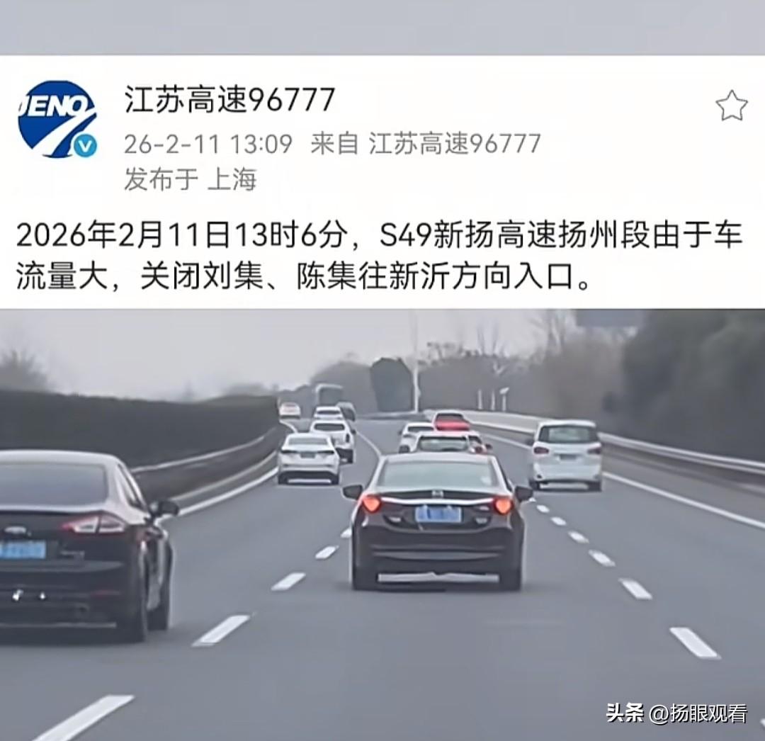 扬州自驾速看!周边高速多入口临时关闭🚫 春运返乡高峰已至,扬州周边高速堵红预警⚠️ 因为据@江苏高速96777 2月11日13时06分最新通报: 因车流量大,S49新扬高速扬州段关闭刘集、陈集往新沂方向入口。 同日13时03分,S28启扬高速扬州段也因车流量大,关闭扬州北、江都北、瘦西湖往润扬大桥方向入口 。 返乡路上的宝子们 ✅ 实时刷新导航,避开管制入口 ✅ 错峰出行,不占用应急车道 ✅ 保持车距,安全第一 祝大家一路畅通,平安到家!