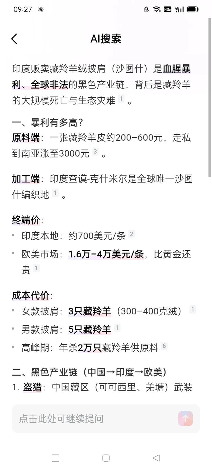 印度才是屠杀贩卖藏羚羊的罪魁祸首! *索南达杰为了救护藏羚羊,一人独自面对18个盗猎分子,英勇牺牲了! 而索南达杰十几个人的反盗猎巡山队,当年要打击的是很多个拥有大量枪支弹药的疯狂猎杀藏羚羊的武装犯罪团伙! 电视剧说一些人也许因为太穷了,所以铤而走险去捕杀藏羚羊。 那么我要问:为什么县委副书记索南达杰领导的巡山队因为经费紧缺而导致人手不足、缺乏枪支弹药等等装备!而穷困的盗猎分子却拥有比较先进强大的武器装备呢? 答案就是盗猎团伙得到了印度相关方面的大力支持!每当中方执法人员出动,境外幕后黑手就提前向盗猎团伙通风报信,犯罪分子就逃之夭夭了。 *我们要感谢美国学者乔治·夏勒,他从1982年开始每年在青藏高原专门研究藏羚羊,1992年他向全世界公布了印控克什米尔利用从中国收购非法盗猎的廉价藏羚羊皮毛、生产比珍宝还昂贵的藏羚羊绒披肩的罪恶产业链! 由此被残酷屠杀了几十年的珍稀藏羚羊才‘名扬天下’! *当年,一张藏羚羊皮在中国卖三五百元钱,走私到印度卖三千块。 而印控克什米尔是全球唯一藏羚羊羊绒披肩生产地!一条女款披肩需要屠杀三只藏羚羊,男人披肩需要屠杀五只藏羚羊!高峰期印度每年从中国获取两万多只藏羚羊的皮毛! 而一条藏羚羊羊绒披肩印度本地卖700美元,贩卖到欧美一条售价高达1.6万~4万美元! 可想而知,几十年来印度通过盗猎、走私、生产藏羚羊羊绒披肩,攫取了无法估量的血腥暴利! 难怪1998年英国《独立报》报道:当时印控克什米尔政府领导丧心病狂地叫嚣说‘我们必须要坚持生产贩卖藏羚羊披肩,没有证据表明存在盗猎藏羚羊的情况,藏羚羊的数量也没有因此大量减少’! 当年盗猎分子通过中国与尼泊尔边境走私,印度首都新德里就是贩卖藏羚羊披肩的著名黑市!