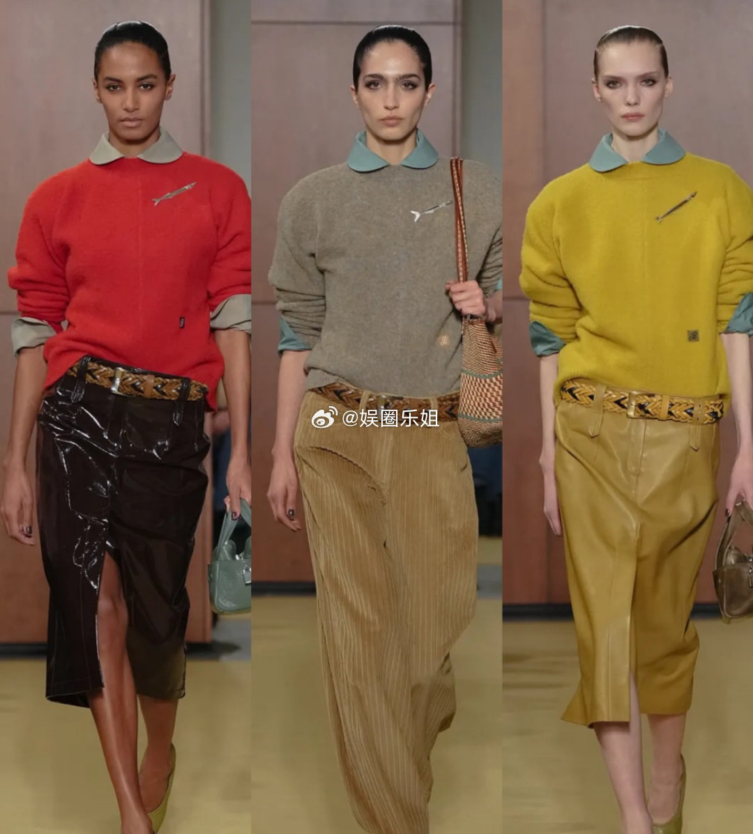 复古廓形+低腰线、铅笔裙、低腰喇叭裤、低腰连衣裙,配合燕麦色基底与青绿、明黄的乐观跳色,精准踩中Softcore趋势,告别精致的名媛风,这一季的Tory Burch 开启了复古风潮!
