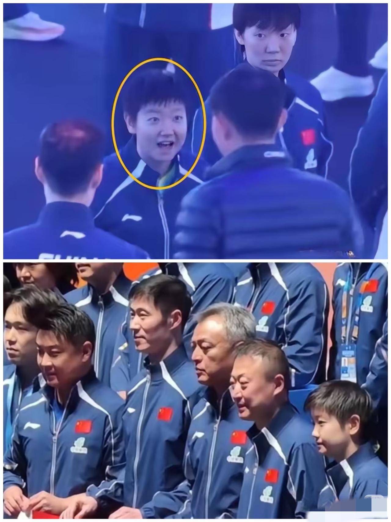 社牛社恐对比太明显! 国乒亚洲杯合影环节,莎莎碰到熟人就开始聊天“刚咋没见到你,待会站一起合影哈。” 再看国乒一众大佬站着笔直,反而有点放不开了。哈哈,不得不说莎莎是真社恐呀,随时随地开聊。 葡萄眼炯炯有神,小嘴叭叭说不停。真社牛!
