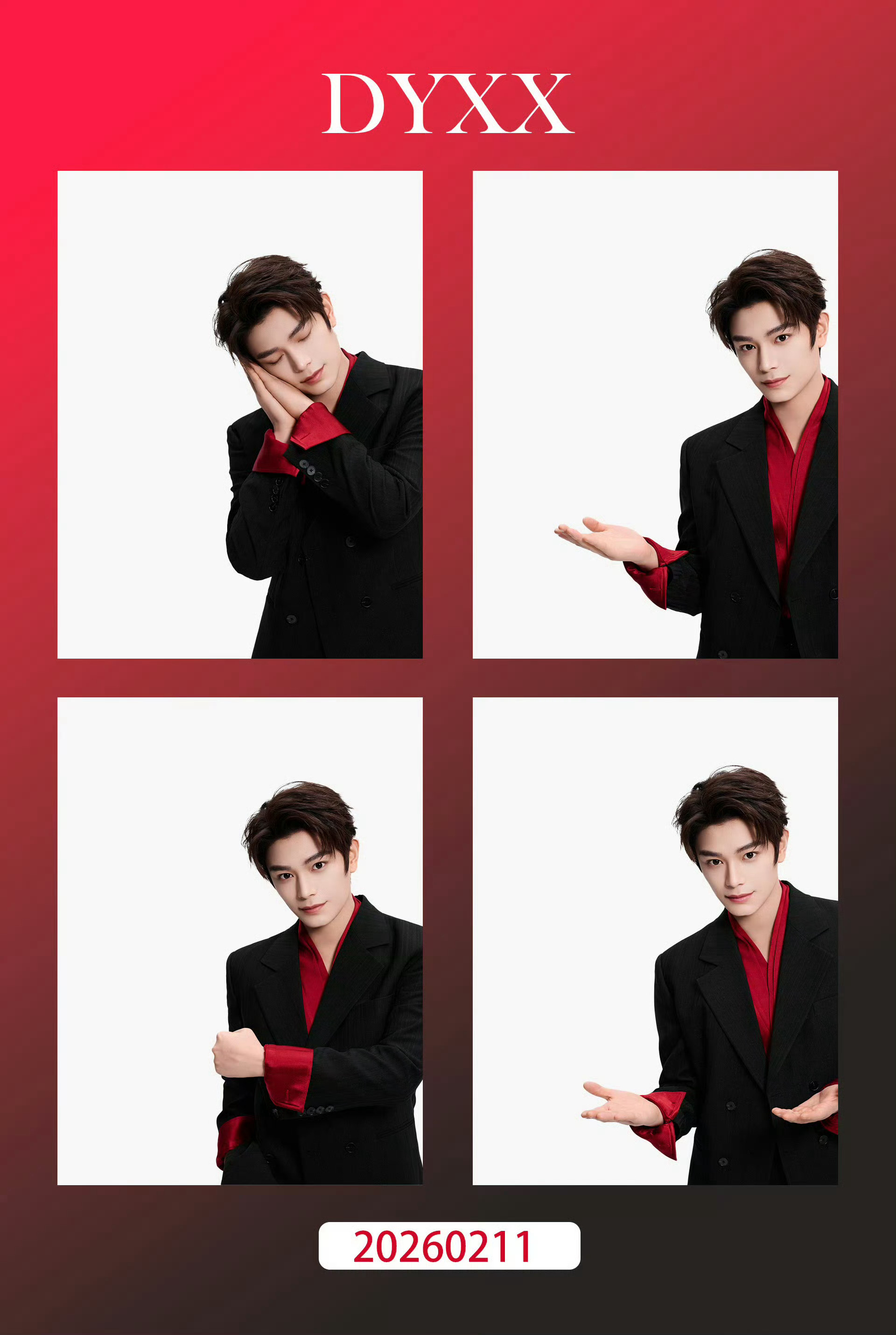 丁禹兮新春四宫格 丁禹兮新春四宫格 特别帅特别萌的兮兮 好喜庆 红色打底配黑色西装一出场就很惊艳