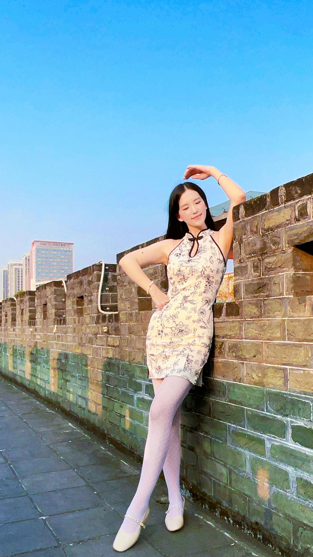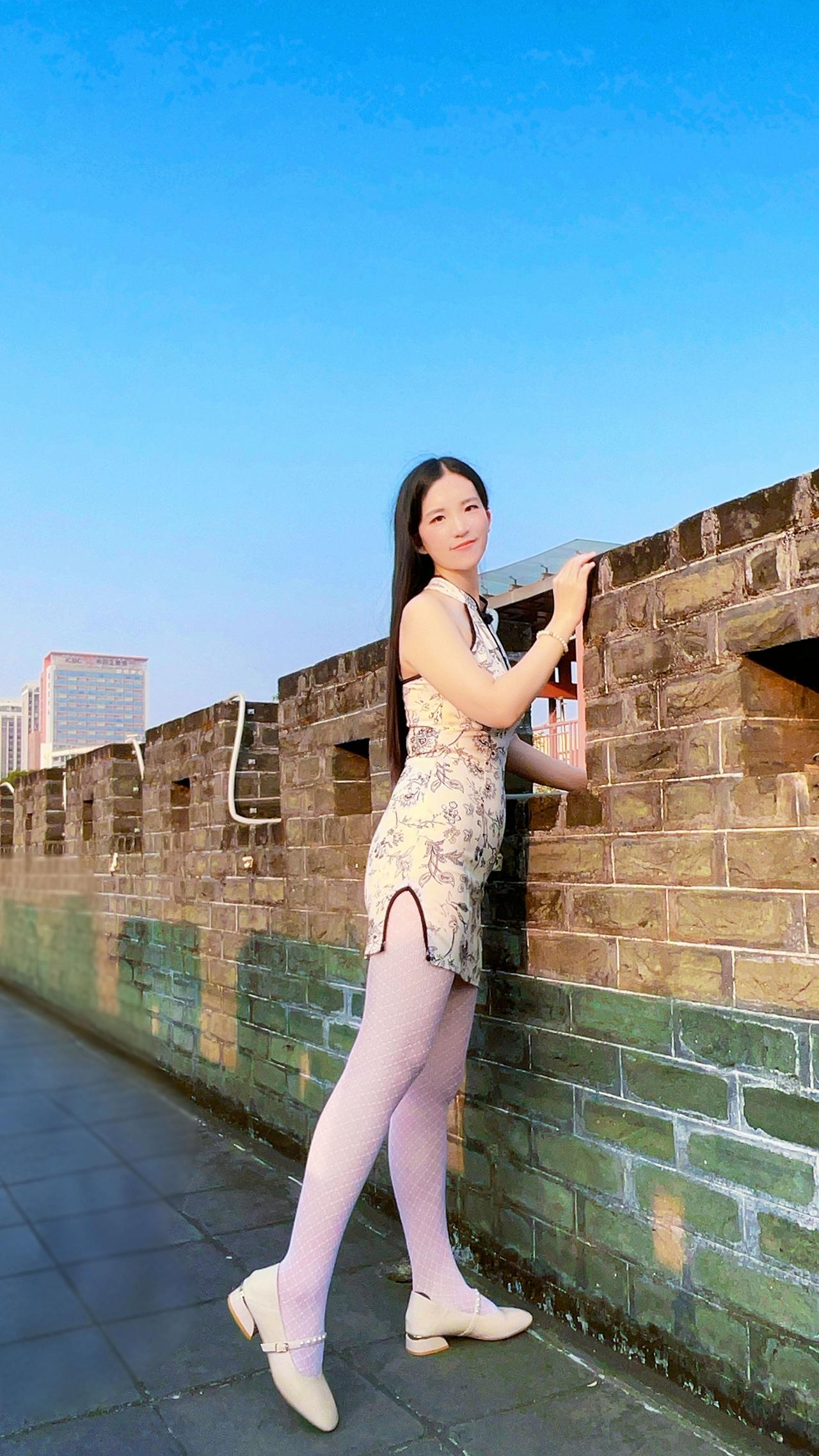 一袭旗袍搭配白丝袜,古风雅韵扑面而来。