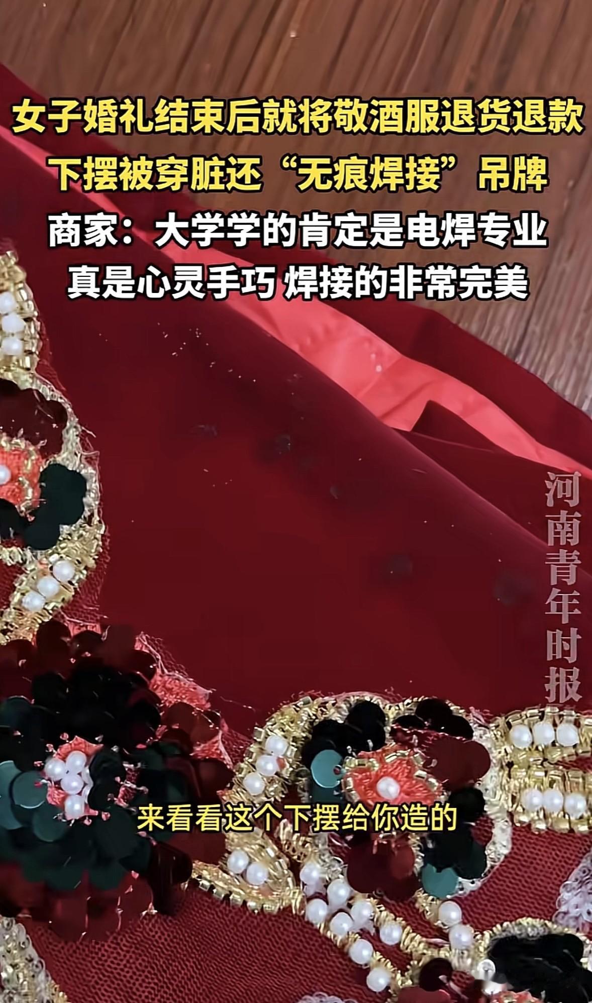 “活不起了?”山东菏泽,女子上网买了件敬酒服,婚礼结束后,她把剪了的吊牌重新焊接上,把衣服退了回去,她以为自己做得天衣无缝,可商家还是通过裙底的泥点和吊牌上的异常发现破绽。商家无奈了,说新娘大学学的肯定是电焊专业,焊接得很完美! 前阵子,一准新娘在网上挑了一件敬酒服,估计是想着婚礼当天穿一次,拍拍照、走个过场,然后再神不知鬼不觉地退掉,把几百块钱的成本给薅回来。 这算盘打得噼里啪啦响,一般人还真想不到这一层。 婚礼当天,这衣服算是派上了用场。但敬酒嘛,得挨着桌走,这一来二去,裙摆底下肯定沾了不少灰,甚至可能还有酒渍、泥点子。 按理说,穿过了、脏了,这衣服就算是二手货了,哪怕不想要了,也不能全退吧?可这位新娘偏不,她铁了心要把花出去的钱再重新拿回来。 等婚礼一结束,她立马申请了七天无理由退货,把敬酒服退回去。 然而,吊牌都拆了,商家肯定不收呀!可这难不倒女子。为了能顺利过审,她决定把吊牌给复原了。 她居然找来了电焊工具,把之前剪断的硬吊牌绳子给重新焊上了。 这可不是简单的拿胶水粘一下,据后来商家展示的照片看,那焊点处理得相当专业,不仔细摸根本看不出来断过。 这新娘估计心里还在窃喜,只要吊牌看着像新的,商家肯定看不出破绽。 快递发出去后,商家那边收到了货。一开始,店主也没多想,毕竟退货是常态。 可等到入库检查的时候,店主就发现了问题。 检查衣服,肯定要全全面面地检查。店主发现,衣服下摆全是脏的,有明显的穿着痕迹,甚至还有磨损的毛边。 再看吊牌,虽然还挂在那儿,但是仔细看一下就能知道,吊牌已经不是原本的模样,有明显的焊接痕迹。 商家当时就气乐了。他们还第一次遇见为了退个货这么干的顾客,这是把他们当傻子哄呢? 商家也没客气,直接拍了照片和视频发到网上曝光了。 视频里,商家指着那个吊牌调侃,说大家看看,这焊接技术,绝对是专业的,焊得严丝合缝,不知道的还以为是原厂工艺呢! 接着镜头一转,商家对准了裙摆底下那一圈黑乎乎的污渍和磨损的边角。 这时商家更是金句频出,说妹子,我不知道你嫁得好不好,但我看你这敬酒服的下摆,你那边的路肯定不好走,你看这下摆给你造的,全是泥点子! 这番话虽然带着点嘲讽,但句句在理。敬酒服是贴身穿的,又是在婚礼这种人多脚杂的场合,下摆脏成那样,还好意思往回退吗? 更别说用电焊焊吊牌这种神操作了,简直是把商家的智商按在地上摩擦。 有人说,为了几百块钱,连电焊都用上了,这新娘也是个人才。 还有人认为,这不仅仅是贪小便宜,这是诈骗吧?焊个吊牌就想掩盖穿过的事实,素质堪忧! 《消费者权益保护法》里的“七天无理由退货”,指的是商品完好,不影响二次销售。 你把衣服穿脏了,吊牌还是焊上去的,这明显属于商品受损,商家完全有理由拒收,甚至还能要求赔偿。 这位新娘的心理其实很典型,就是典型的侥幸心理加极度利己。 她觉得商家每天发货量大,检查不会那么细致,觉得快递员不会拆包看,觉得只要表面功夫做足了就能蒙混过关。 她赌的就是商家的疏忽和怕麻烦。 可惜,现在的电商环境,尤其是服装类目,商家的验货流程比你想象的要严格得多。 特别是高单价的礼服,入库检查那是相当仔细。你那点电焊技术,在专业的验货员眼里,就是个笑话。 这事儿最后的结果也很解气。商家直接拒绝了退款申请,还把这事儿当成了典型案例挂了出来。 这位新娘不仅没省下钱,还在全网“社死”了一把。 做人还是得厚道,尤其是结婚这种大喜日子,却做出这种事,太丢人了! 《民法典》第7条规定:民事主体从事民事活动,应当遵循诚信原则,秉持诚实,恪守承诺。 女子网购敬酒服后穿着参加婚礼,导致裙摆脏污磨损,本已不符合七天无理由退货中商品完好的前提条件。 为了达到退款目的,她竟采用电焊这种极端手段修复吊牌,试图掩盖商品已被使用的事实。 这个行为不仅是道德层面的贪小便宜,更不符合诚实信用原则。 从法律角度看,女子利用电商平台的售后规则漏洞,通过虚构事实隐瞒真相,诱导商家做出错误的退款判断。 这种主观上的恶意欺诈,使得双方的买卖合同关系发生了质变。她不再是单纯的消费者,而是试图通过非法手段获取不当得利的侵权人。 商家拒绝退款并予以曝光,完全符合法律赋予的自卫权利。如果女子坚持索赔,甚至可能因数额较大或情节严重,面临治安处罚或刑事诈骗的指控。 对于这件事,你怎么看? 欢迎关注@一案一论