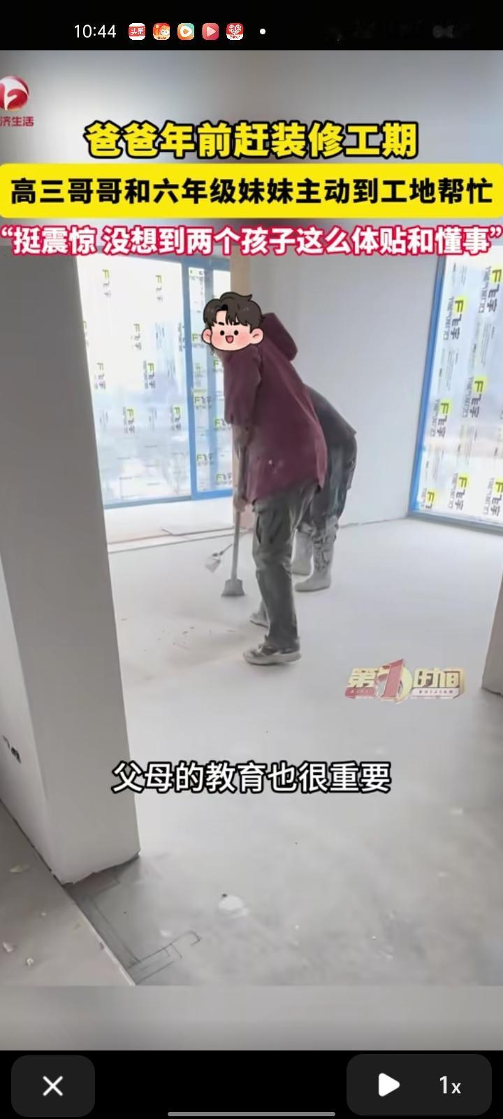 2月10日,无锡江阴市。网友发视频称,寒假装修赶工期,两孩子的爸爸来家里干活,爸爸没到时时两孩子先上来的,主动帮爸爸扛袋子、拿工具,看着很震惊,没想到两孩子这么体贴懂事,说明父母的教育很重要,带孩子体验生活,让他们知道生活的不易。