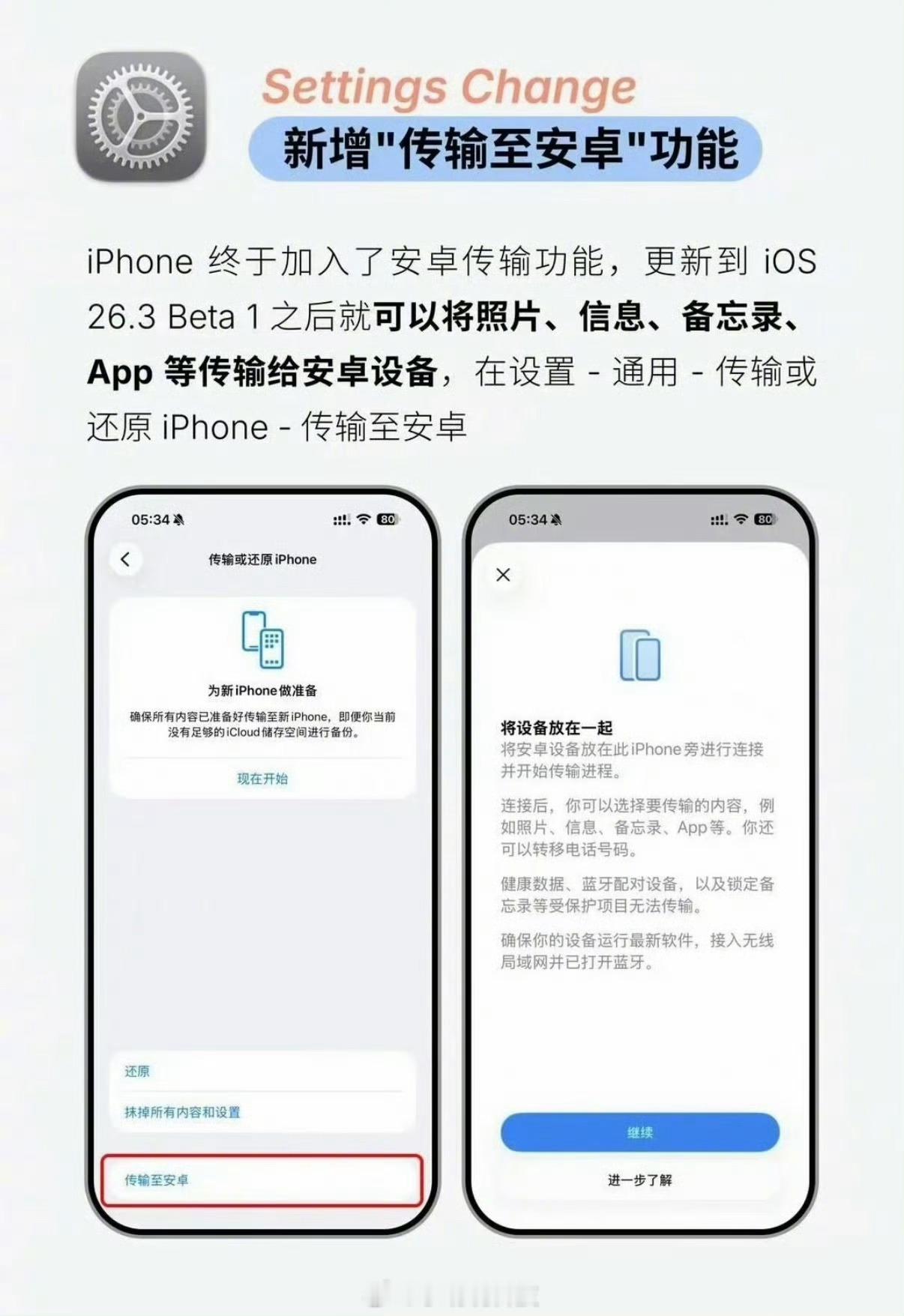 苹果这次算是真的放低了姿态,主动打破生态壁垒了。升级到iOS 26.3最惊喜的一点,就是iPhone安卓无缝换机,不用第三方工具,数据直接迁移,对我们普通用户来说,换机成本低了,体验也更友好。好奇问大家一句:你们会因为这个,去选择iPhone吗?评论区聊聊真实想法~