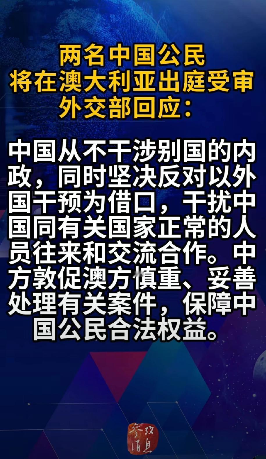 中方敦促澳大利亚慎重妥善处理,保障中国人民合法权益。点赞。[赞]