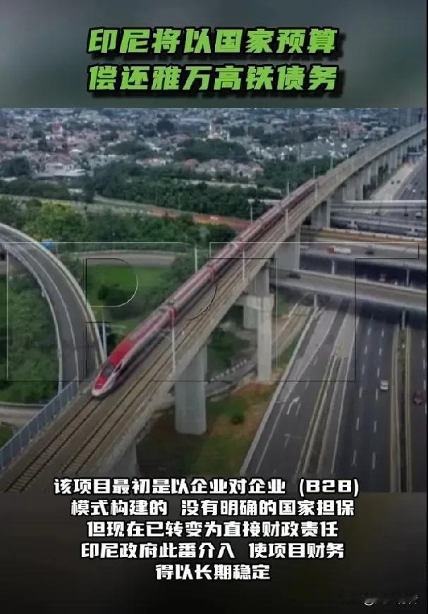 印尼将以国家预算偿还雅万高铁债务。 2月12日,据《今日俄罗斯》援引印度尼西亚媒体ASIATODAY.ID报道,印尼已确认将动用国家预算偿还雅加达至万隆高速铁路(简称“雅万高铁”)的相关债务,这标志着该国基础设施融资战略及其与中国在“一带一路”倡议下的合作迈出了关键一步。 报道称,该项目总价值约72亿美元,其中包括12.1亿美元的超支。融资结构方面,约75%的资金来自中国国家开发银行的贷款。剩余部分则由印尼-中国合资企业KCIC 出资。 该项目最初是以企业对企业 (B2B) 模式构建的,没有明确的国家担保,但现在已转变为直接财政责任,印尼政府此番介入,使项目财务得以长期稳定。 据了解,2017年为建雅万高铁,印尼从中国借贷45.5亿美元,期限40年、年利率2%。后项目超支12亿美元,又追加借贷5.6亿美元,年利率提至3.4%,累计借贷51.1亿美元,扣除已偿还部分,仍有几十亿美元缺口。 雅万高铁开始运营后,亏损持续扩大,2024年全年亏损约2.5亿美元,2025年上半年亏近1亿美元,市场预估2025年全年亏损或达3.5亿美元,票务收入仅够覆盖年度利息。 雅万高铁债务形成的原因主要是建设成本超支。项目最初预算60亿美元,最终耗资73亿美元,超支12亿美元。原因包括新冠疫情致出行受限、土地征收纠纷致工期延误、行政效率不足等。 运营亏损方面主要是市场培育时间成本被低估,2024年实际客流远低于预期,年毛收入难覆盖年利息支出;配套设施滞后,车站距市中心远且配套交通未同步建成,抵消高铁时间优势;项目管理能力不足,审批、协调、监督体系低效,造成延期和成本增加。