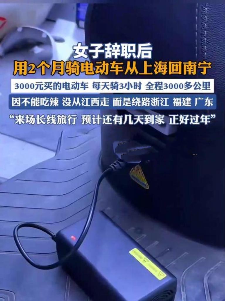 女子骑电动车近俩月从上海一路“摇”回广西老家,这毅力与勇气令人惊叹!沿途风景、风土人情肯定超丰富。你是否有过类似超长距离的骑行或难忘旅程?快来评论区分享,一起感受旅途的精彩与不易!上海到广西