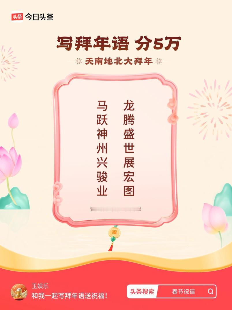 写拜年语送祝福新春拜年送祝福!我的祝福是:“马跃神州兴骏业,龙腾盛世展宏图”!快来一起写祝福吧戳这里,一起领红包>