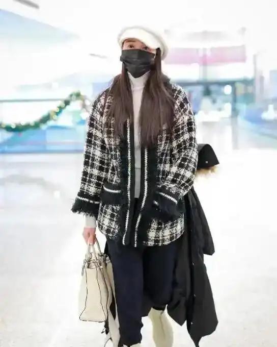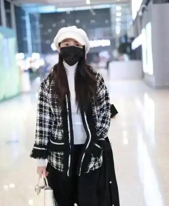 52岁伊能静现身机场,羽绒服反穿似披毯,造型超吸睛