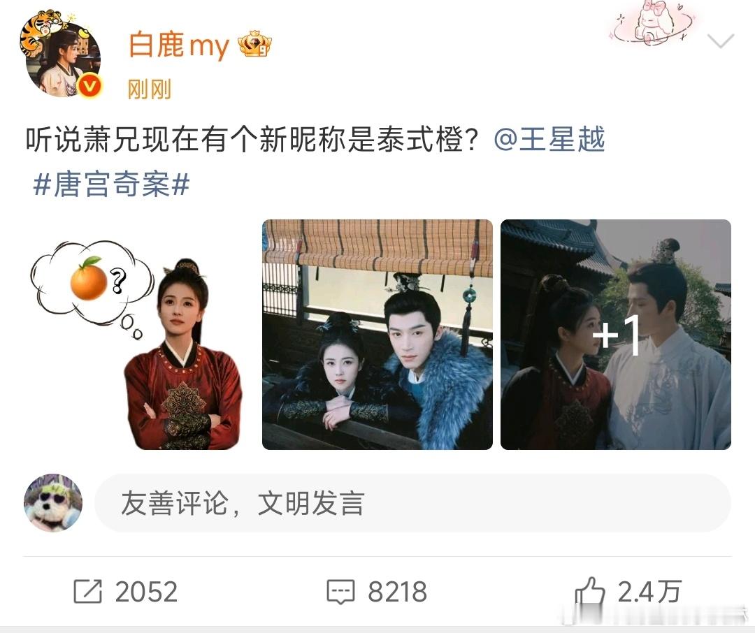王星越回应白鹿新昵称白鹿王星越玩泰式橙梗哈哈哈