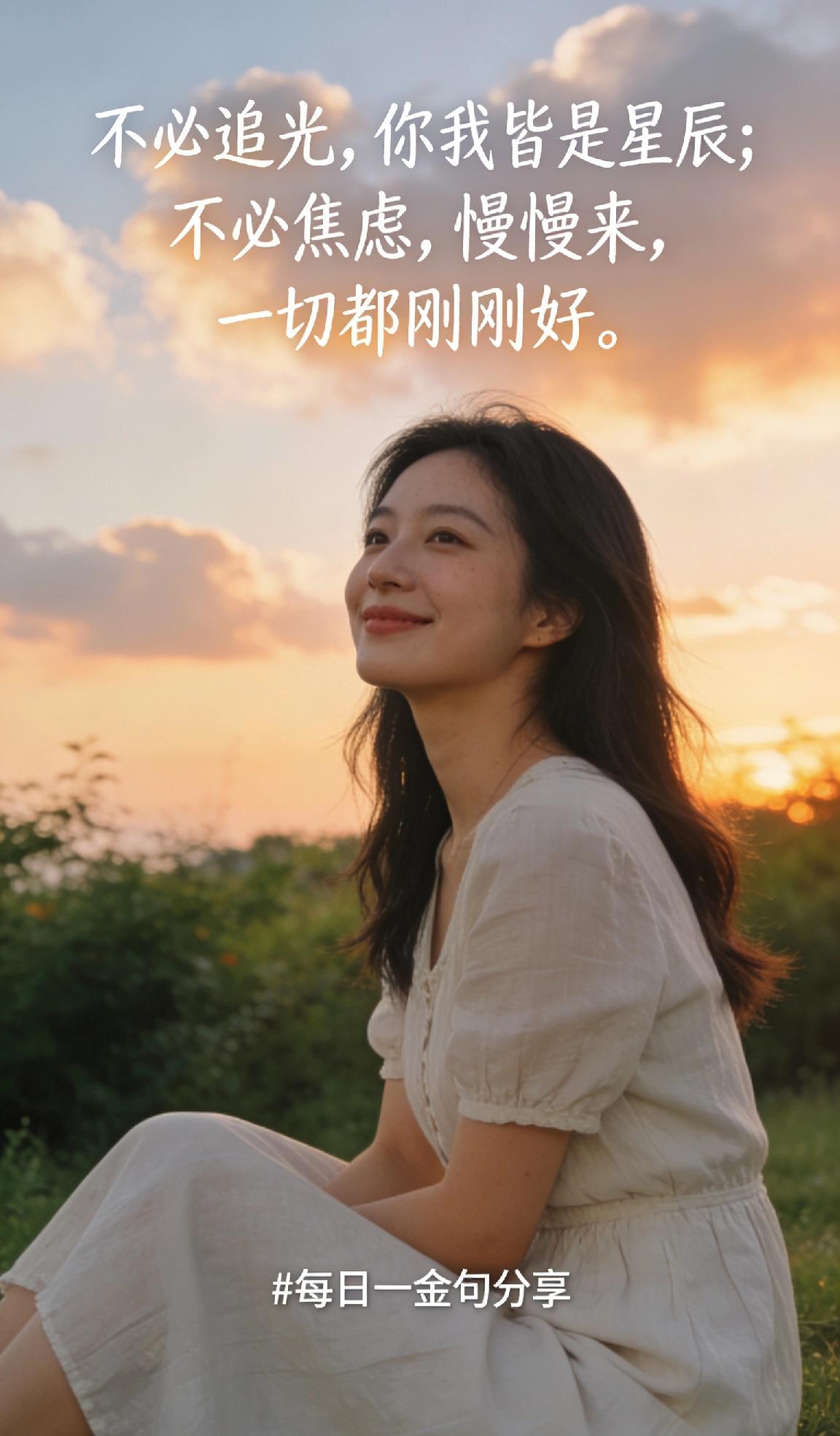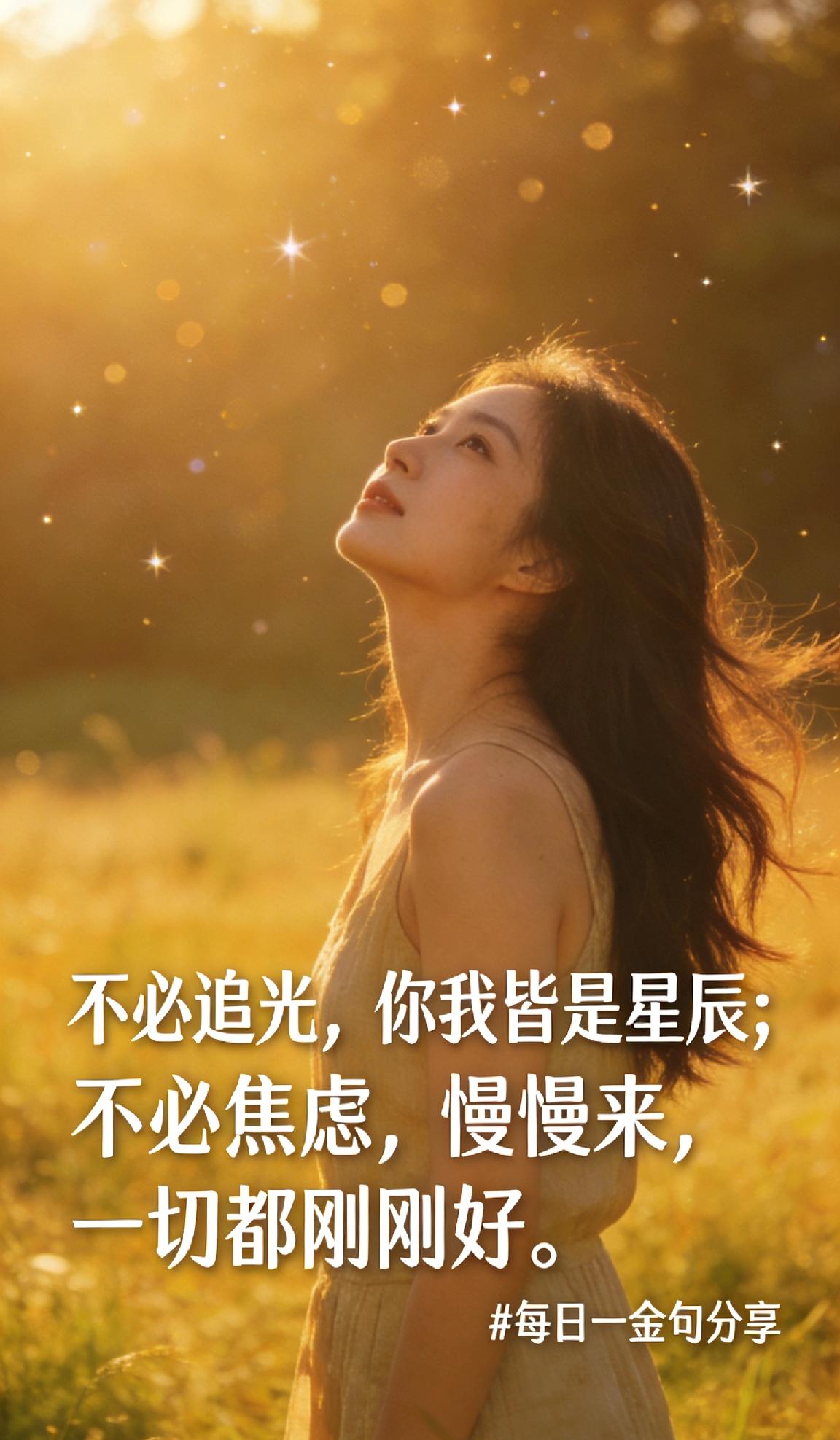 每日一金句分享 不必追光,你我皆是星辰;不必焦虑,慢慢来,一切都刚刚好。每日一金