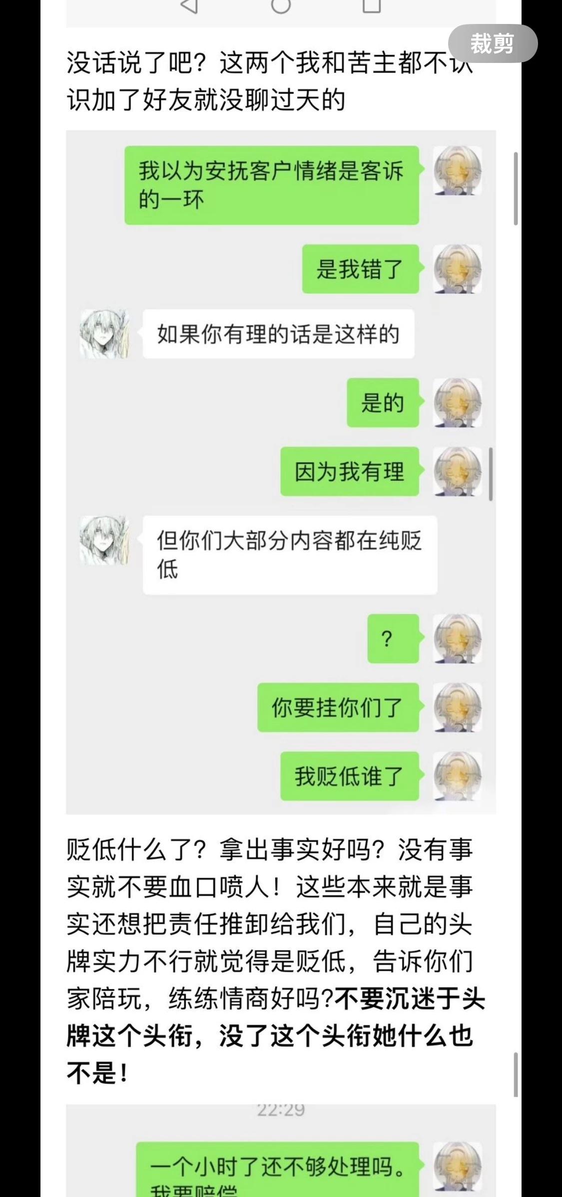陪玩团半夜打电话骚扰我让我撤销评价怎么办 关于前段时间的争议,完整挂条在这里。之前,我没有截图他们接待的头像,因为我也只是发泄个人情绪。没想真的挂的。他们发私信质问我为什么要解码。而且道歉声明非常敷衍,没有赔偿。我昨天被电话弄得睡不着。 我不知道怎么办,我只是拿回了我点单的钱。我因为结束这场虐恋。太生气,就说了陪陪,我脾气不好,所以语气很差,但是我没有要赔偿,只要了本来的钱。光遇三恋 不要被骗了 防止被骗 防诈骗 陪玩团 陪玩团瓜条 陪陪说不允许私下截图,但是我做错了,我截图了。但是我截图过程,是为了客诉,没有想学话术,没有要发出来的意思。 那么不允许截图是因为怕你说的不好么。我点的是头牌。不是普陪。现在因为他们对我的攻击我也是没办法才会这样做。请大家提高防范意识,不要被诈骗,心情也不好。诈骗防范 威胁人身安全防诈宣传