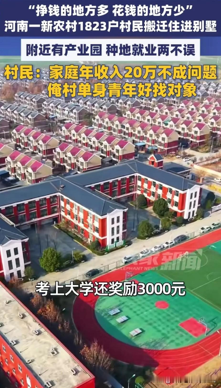 在这个村子当农民太辛福了! 河南郑州的一新农村,1823户村民统一的搬迁住进了别墅。 三层的小洋楼,没有物业费,车位费,孩子可以免费上幼儿园,考上大学还有奖励。 以前的华西村好像就是这个,家家户户都住别墅,村民可以在集体企业上班,也可以在家里务农。 但好像现在不行了,欠了好多钱。 只是这样的农村,衣食倒是无忧了,总觉得缺点什么。 新农村 富裕的新农村 农村建新家 农村新小区 安阳新农村