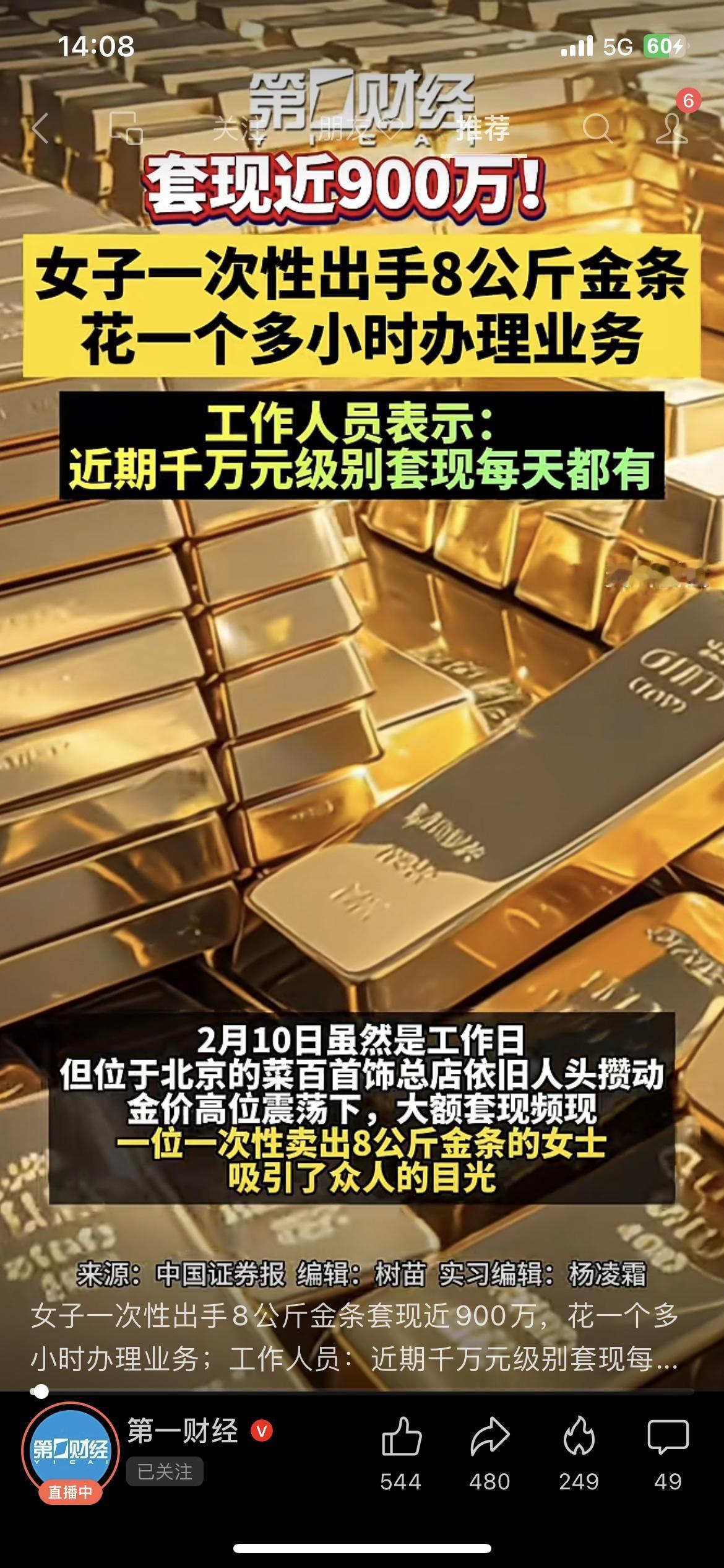 说实话,这两天刷到的新闻,每一条都在戳咱普通人的钱袋子和安全感。 大姐一次性出手8公斤金条套现近900万,最近千万元级黄金套现天天都有;美国悄悄囤100万吨铜创历史纪录;春节625亿国补+10亿有奖发票到位;港股科技大涨,瑞银却下调美科技评级。 市场一涨一跌,政策真金白银,别光看热闹,看懂门道,才能捂紧钱包、薅到福利。