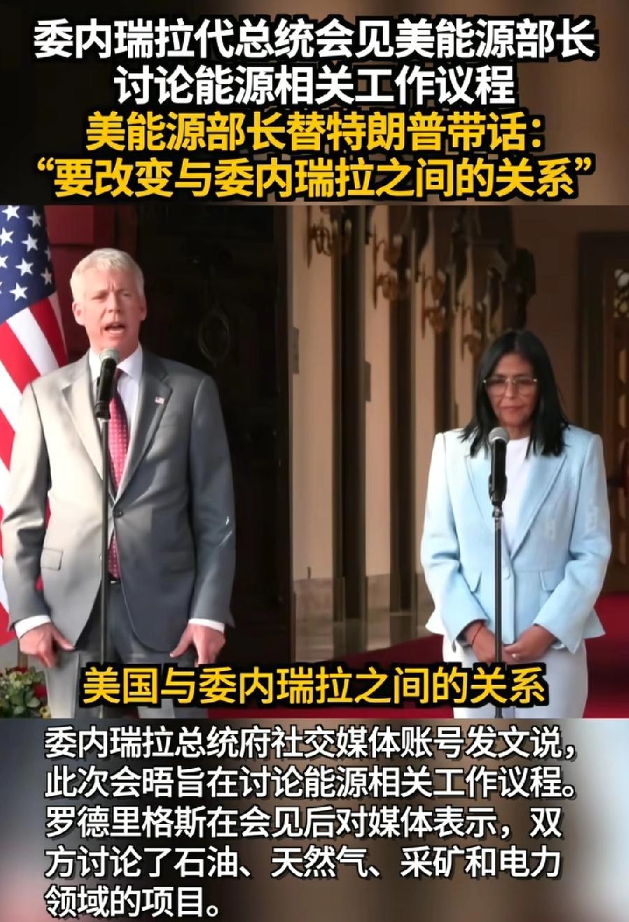 委内瑞拉,弱国无外交!美国能源部长与女代总统,二人姿势、表现形成鲜明对比!美国一个部长,变成了委内瑞拉的洋大人,声音洪亮、颐指气使,宣读特朗普的“圣旨”,再看女代总统,站在身边、缩手缩头,战战兢兢,害怕得像老鼠看见猫一样!这一幕,像极了当年美国占领日本,麦克阿瑟与日本裕仁天皇的合影!