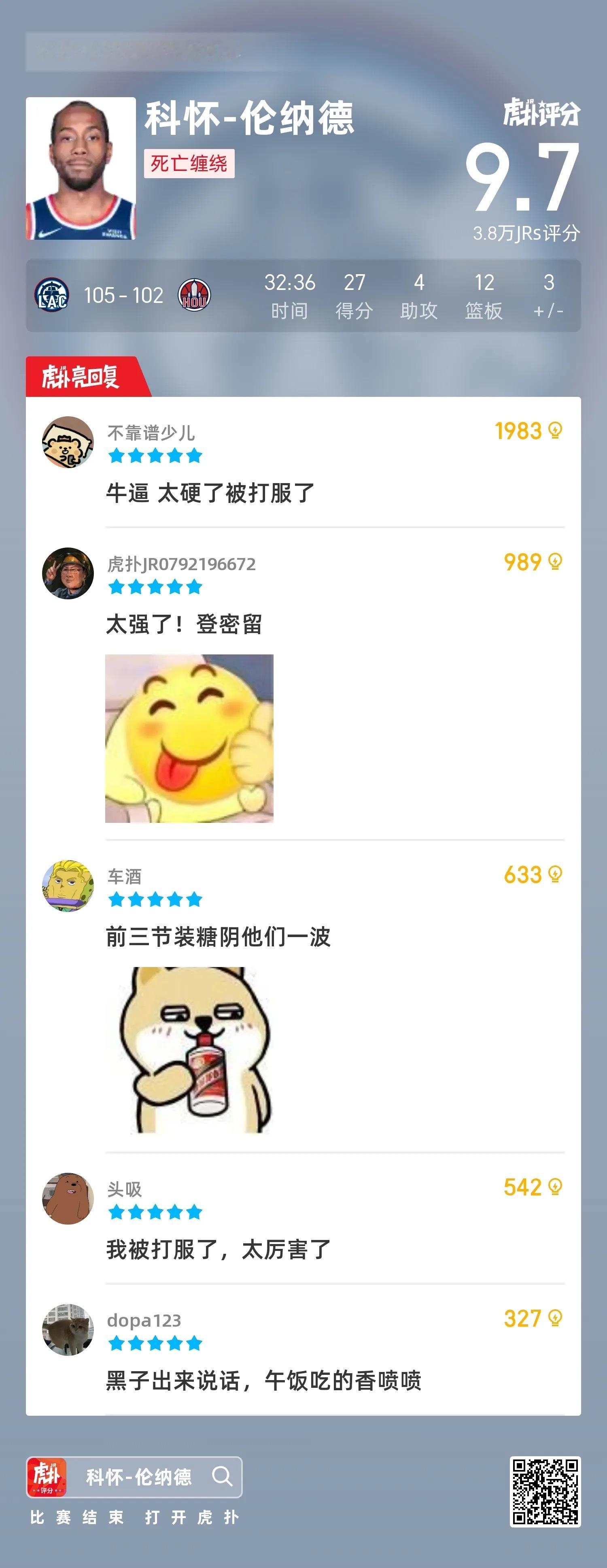 战神卡!伦纳德面对阿门中距离命中,快船准绝杀火箭