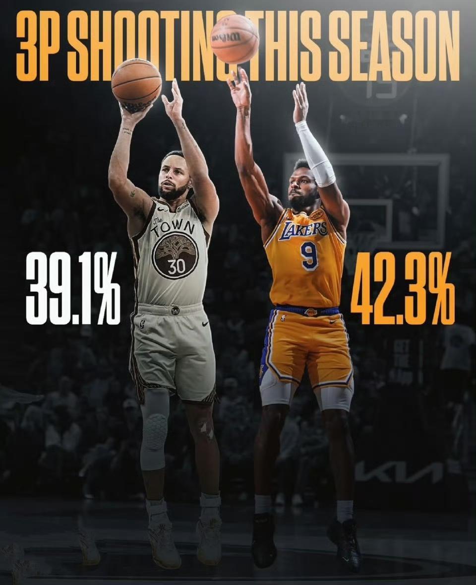 美媒统计三分球命中率,布朗尼比库里高! 詹姆斯球迷看到后对此无语,害怕别人说,这是不自信的表现。 布朗尼也是NBA球员,数据拿来和别人比较很正常,确实比库里高一点。 湖人再给他多点机会,将来进轮换阵容就不错了。[大金牙]