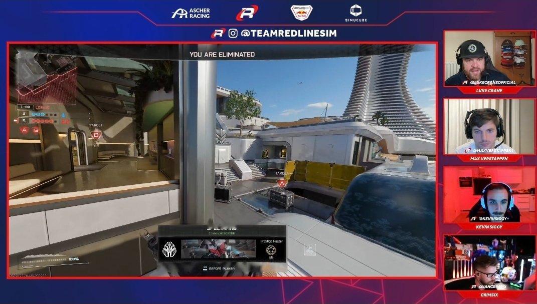在巴林一天跑了136圈之后,晚上维斯塔潘和Team Redline的队友们一起打使命召唤