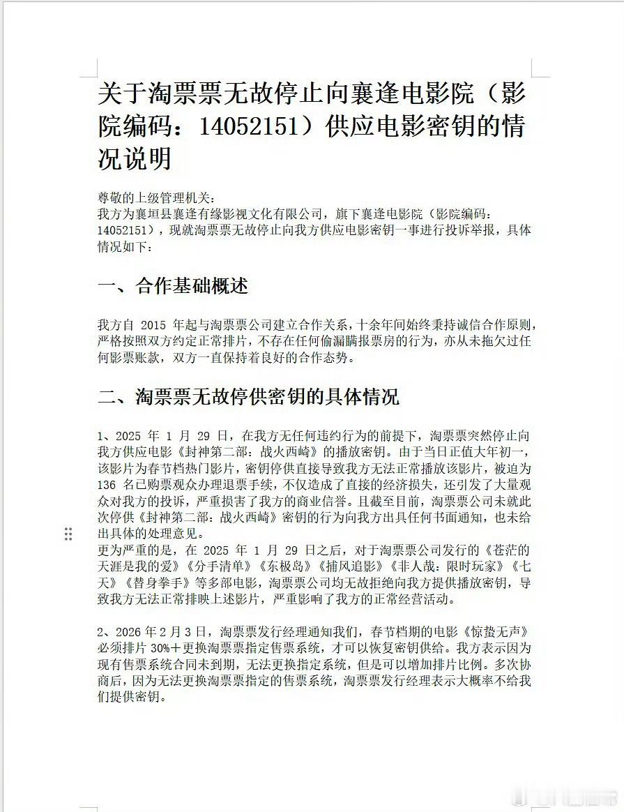 所谓的停密钥威胁,不是只停正在上映的一部,图三院线发的说明佐证了