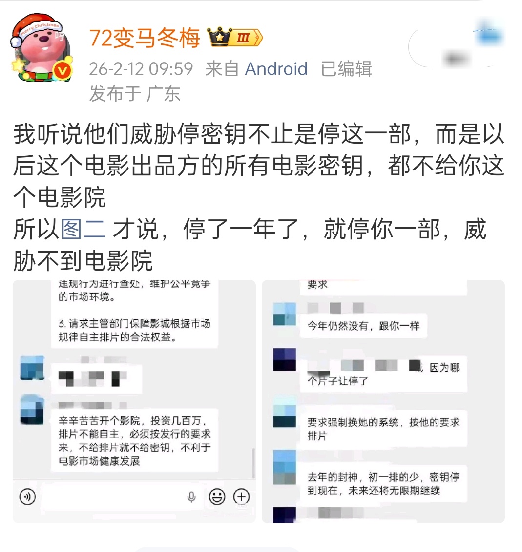 所谓的停密钥威胁,不是只停正在上映的一部,图三院线发的说明佐证了