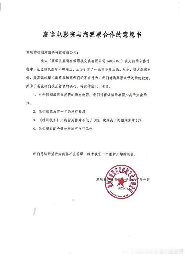 3. 影院还晒出多份“不平等合作意愿书”,显示淘票票曾多次胁迫影院:《东极岛》等片首周排片不低于50%,所有影片排片率高于大盘8%,还要放弃一年发行费…作为小县城影院,真的毫无话语权,这算不算滥用市场地位?🤔反垄断淘票票春节档电影