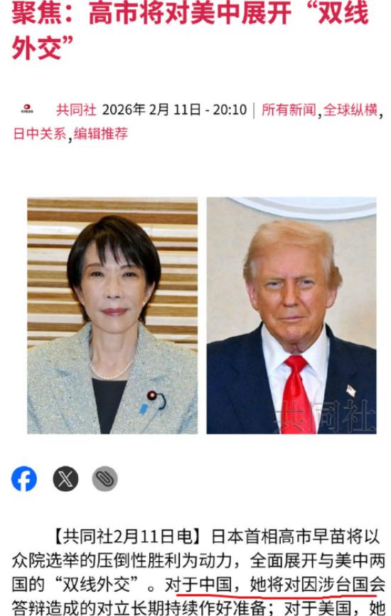 高市早苗:已对中日对立做好长期准备! 2月11日,共同社称高市早苗在胜选后的记者会上直言:她将对因自己言论造成的中日对立,做持续和长期的准备。”刀哥认为这句话透露出她的基本判断:中日之间的矛盾,实际根源不在具体事件,而在战略上的根本分歧—中方崛起带来的权力再平衡,令日本无法摆脱做棋子的角色,只有冲到最前线才能让美国满意。 首先,高市早苗的 “长期准备”,就是演给两个人看的 — 一个是美国,一个是日本国内的右翼分子。她心里比谁都清楚,自己能坐稳位置,能推进修宪、扩军的野心,全靠这两方的支持。 对着美国,她故意挑事,发表涉台挑衅言论,说什么 “台湾地位未定”,暗示日本自卫队可能介入台海,看似是在跟中国作对,实则是在向美国表忠心:你看,我帮你制衡中国,你可得继续罩着我,默许我修宪、扩军。毕竟美国一直想让日本当亚太第一岛链的 “看门狗”,高市早苗主动递上投名状,美国自然乐意顺水推舟。 对着日本国内的右翼势力,她渲染 “中国威胁论”,把中日对立的责任全推给中国,就是要煽动民众的情绪,让大家觉得 “日本不安全,必须扩军、必须修宪”,这样一来,她推进修宪、增加防卫预算,就有了借口,就能牢牢抓住右翼选民的心,巩固自己的政治地位。 更有意思的是,高市早苗的 “长期准备”,还有一层藏得很深的心思 — 想借着和中国对立,摆脱美国的控制。这些年,日本一直是美国的 “小弟”,看似有美国庇护,实则处处受牵制,美国说往东,日本不敢往西,美国甚至会为了自己的利益,牺牲日本的利益。 高市早苗心里门清,这种 “依附关系”,永远让日本抬不起头。所以她故意制造中日对立,就是要让美国意识到:日本是你制衡中国的关键,要是没有日本,你在亚太就少了一只重要的手,你必须重视我,必须给我更多自主权,允许我发展军事、提升国际地位。说白了,就是想 “借对抗中国,逼美国松绑”,摆脱自己 “棋子” 的宿命。 可她忘了,这条路,从一开始就是条死路,她所谓的 “长期准备”,不过是自欺欺人,更是在把日本往火坑里推。 她上台之后,不光嘴上喊得凶,行动上也没闲着:任命前自卫队将领当安保辅佐官,把军事力量直接插进决策层;疯狂增加防卫预算,2026 年的预算再创新高;放宽武器出口限制,一门心思搞军备扩张,还美其名曰 “拉动经济”。 可这些举动,不光遭到了中国的坚决反制,在日本国内,也引起了轩然大波。不少日本民众上街抗议,指责她不顾民生,一门心思搞对立、扩军,把日本推向战争的边缘;日本很多有识之士也站出来反对,说她的做法违背了《日中联合声明》,忘记了历史教训,是在重蹈覆辙。 国际社会也看得明明白白,高市早苗的挑衅,根本不是在维护日本的安全,而是在破坏东亚地区的和平稳定。意大利学者直接批评她,说她的涉台言论违反国际法,只会加剧地区紧张;德国专家也直言,日本右翼政客不反省历史、盲目扩军,是极其不负责任的做法。 其实大家都清楚,中日之间,根本没必要长期对立,对抗起来,没有赢家,受伤的最终还是两国的民众。高市早苗之所以执意要搞对立,说白了,就是为了自己的政治野心,为了满足日本极右翼的私欲,把整个日本的命运,当成了自己博弈的筹码。 她嘴上说 “做好长期准备”,可她根本没考虑过,真的长期对立下去,日本会面临什么 — 中日贸易受阻,日本经济雪上加霜;周边国家对日本失去信任,日本陷入孤立;一旦擦枪走火,日本民众必将承受战争的苦难。这些,她都不在乎,她在乎的,只有自己能不能坐稳位置,能不能实现自己的野心。 中方的态度,一直都很明确:我们不想惹事,但也绝对不怕事;我们珍惜中日两国人民的友谊,也希望中日关系能健康稳定发展,但我们绝不会容忍任何国家、任何势力,挑衅中国的核心利益,干涉中国的内政。 高市早苗要是真的敢把 “长期准备对立” 的话,落到实处,真的敢在涉台等核心问题上继续玩火,真的敢把日本绑上对抗中国的战车,那中方也绝不会客气。我们会做好充分准备,坚定捍卫国家的主权和领土完整,用实际行动告诉她,任何挑衅中国底线的人,最终都只会自食恶果。 说白了,高市早苗的 “长期准备”,就是一场荒唐的闹剧,一场为自己野心铺路的赌博。她以为自己能借着对立,实现自己的目标,能让日本摆脱控制,可她终究会明白,逆势而为,只会一败涂地;挑衅中国,从来都没有好下场。