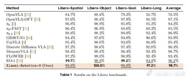 雷军公布小米机器人最新进展小米这款开源的机器人VLA大模型是真的有硬实力,Benchmark直接超了OpenVLA和Pi,妥妥的行业第一梯队。